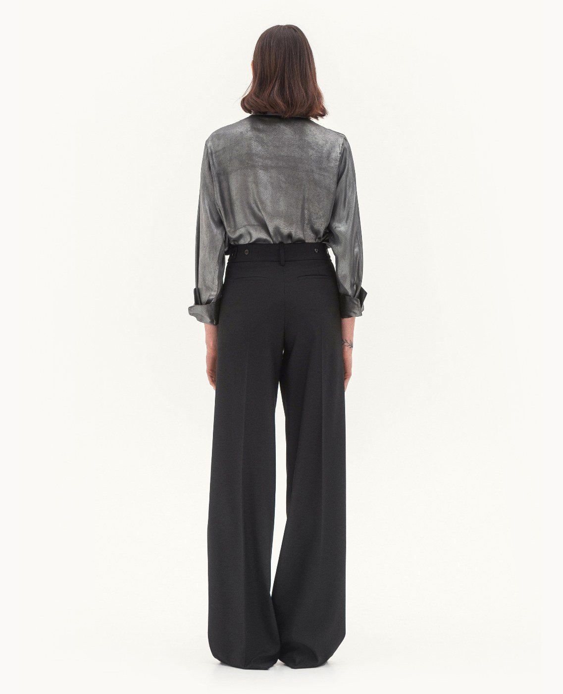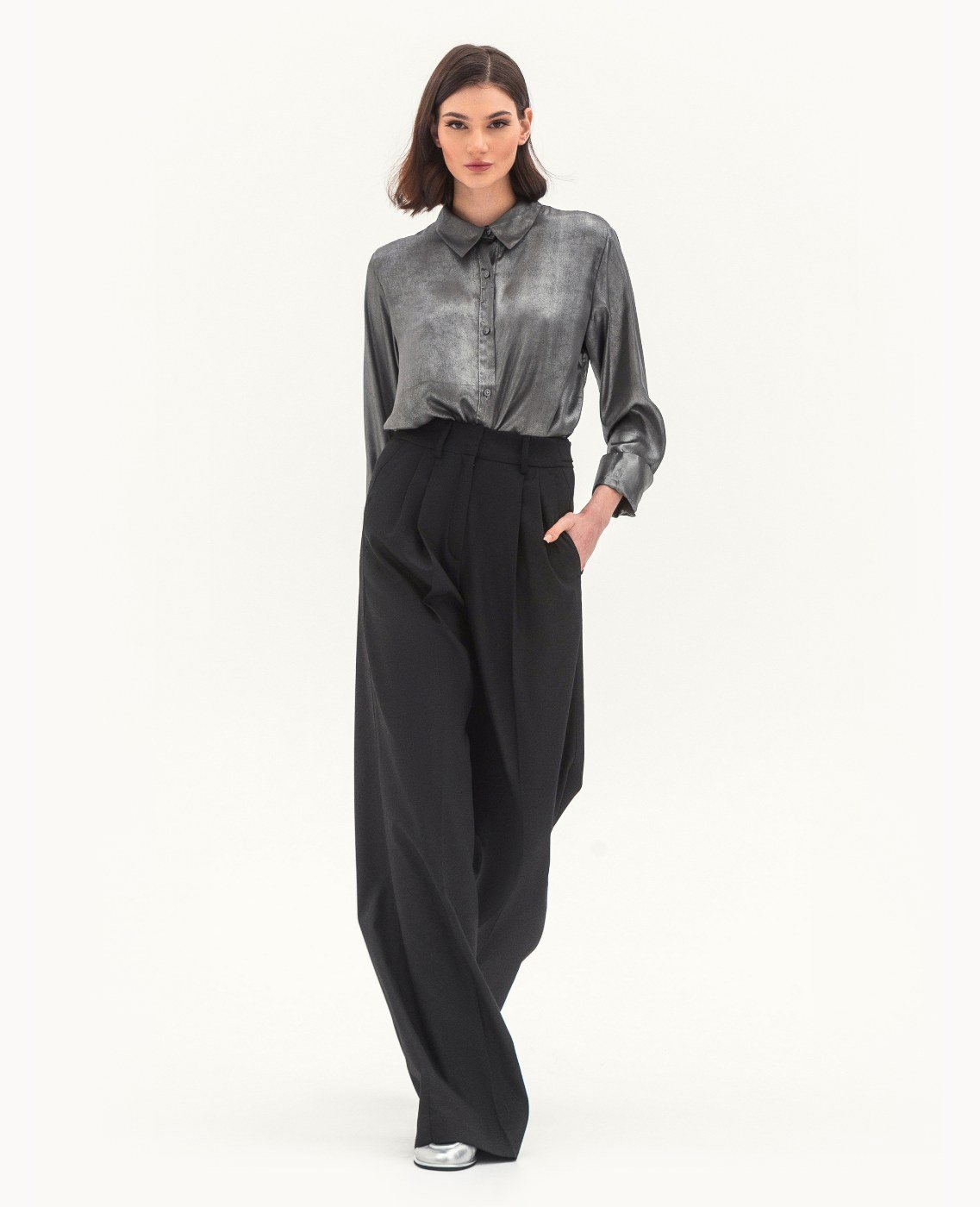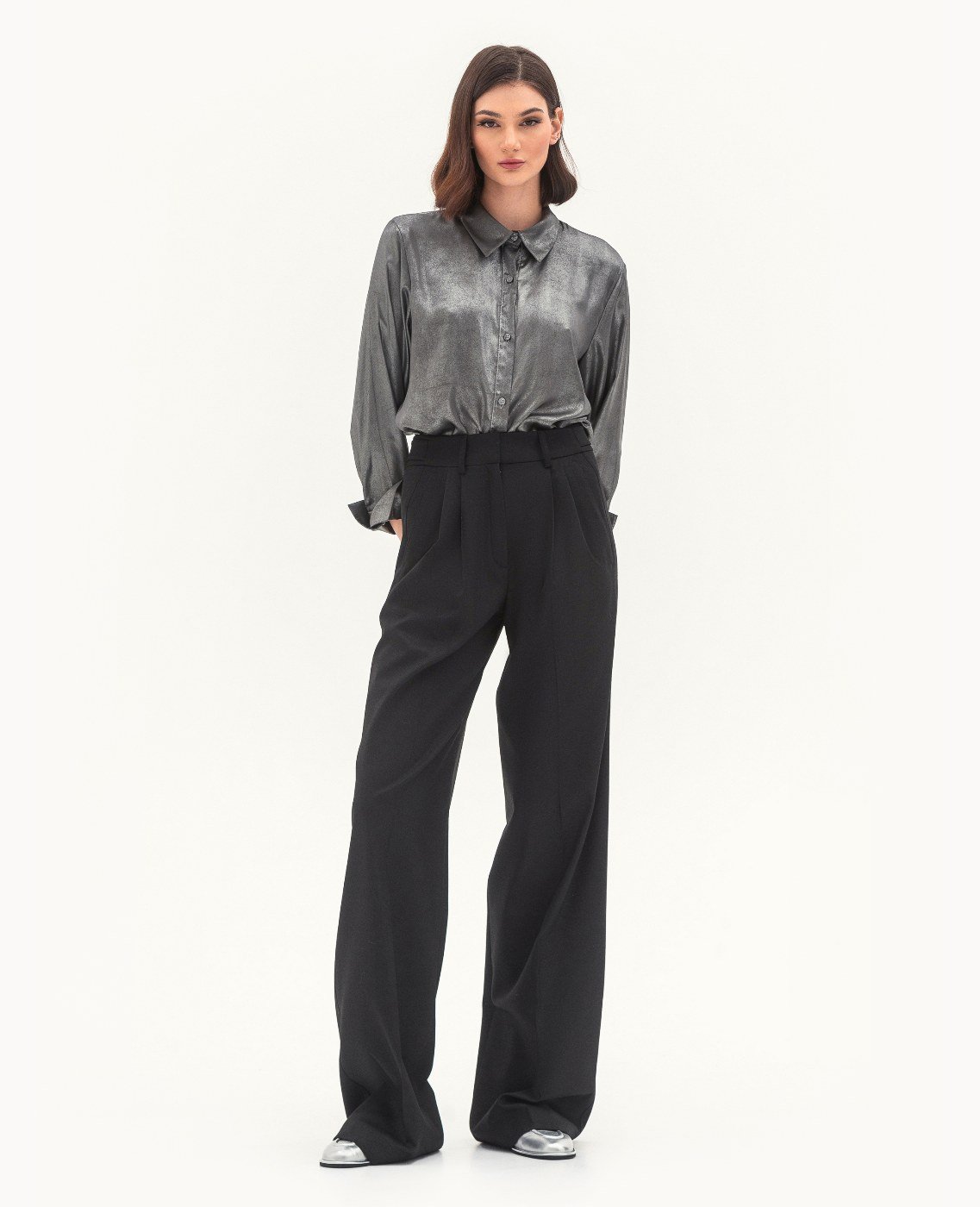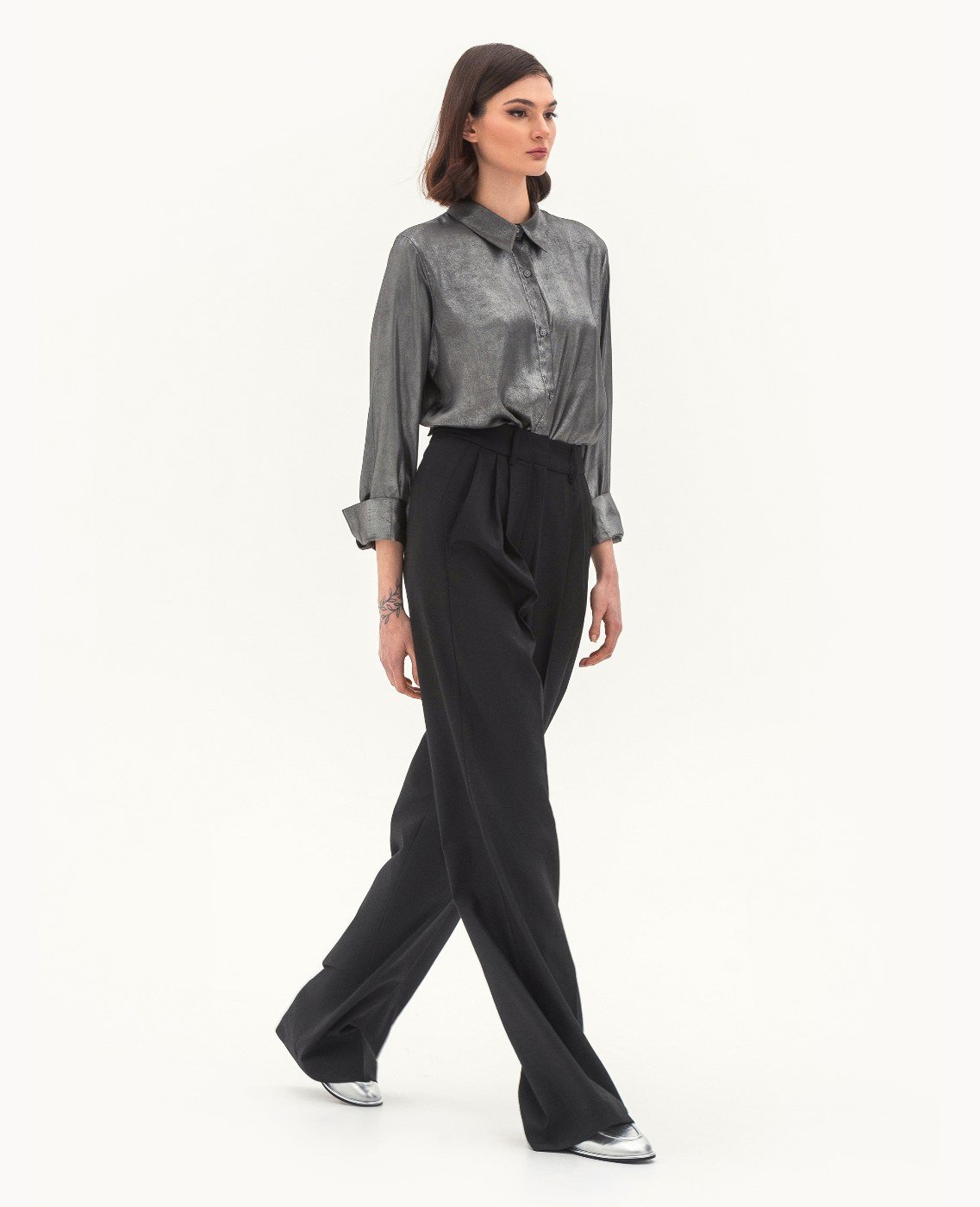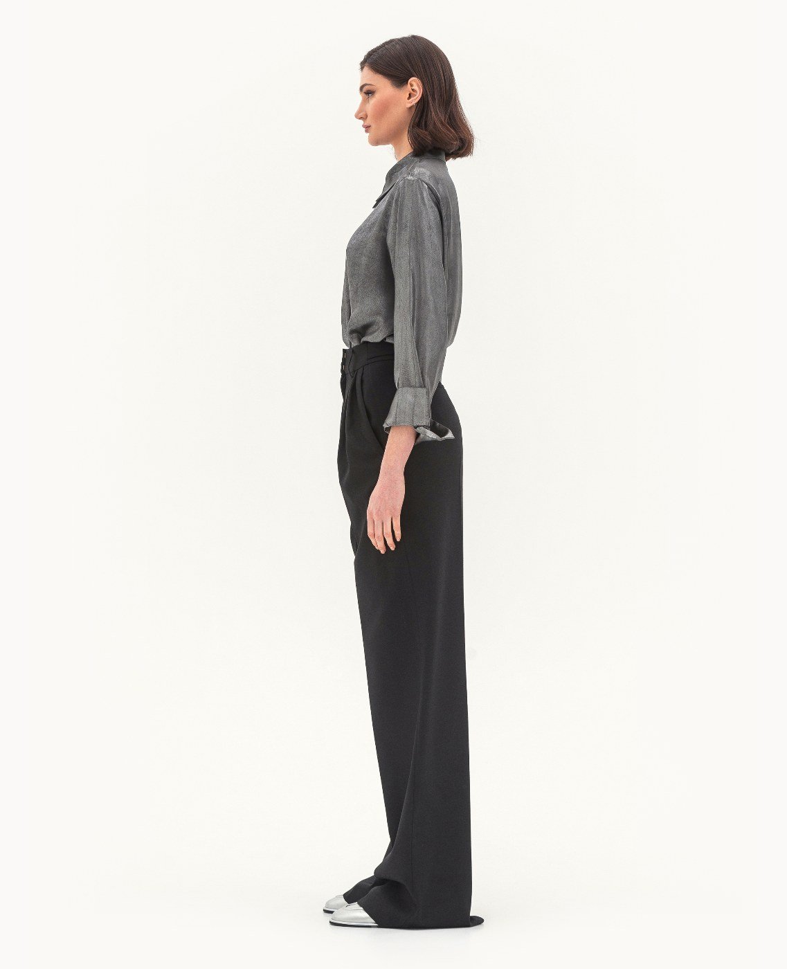 Вид изделия: брюки свободного кроя, со складами, с регулировкой обьема талии. Посадка по линии талии: средняя. Плотность и вид ткани: средней плотности текстильный материал с добавлением эластана. Вид застежки: молния, крючки, пуговица. Н Наличие и вид карманов: подкройные. Уход за изделием: Деликатная, быстрая, ручная стирка при 30 градусах, без использования агрессивных моющих средств. Размер изделия на фото: UA 40; еur 34; USA 2; INT XXS. Параметры модели на фотографии: Рост: 179см, ОГ — 89см, ОТ — 60см, ОБ — 89см.