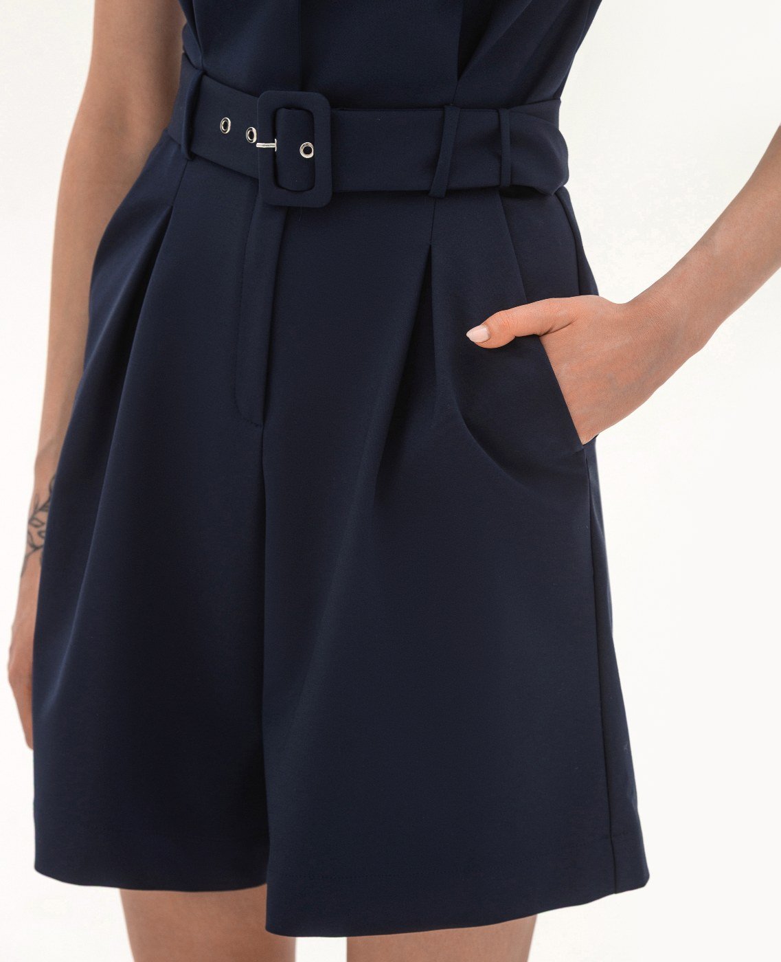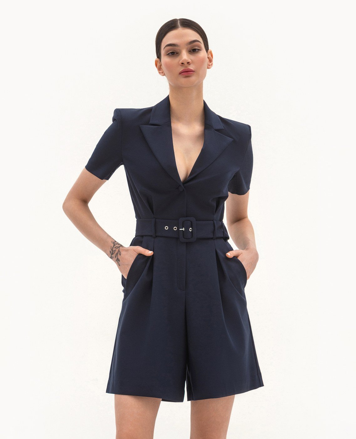 Вид изделия: элегантный комбинезон с шортами — бермудами, с воротником и лацканами, со сьемным поясом на пряжке.Силуэт, длина: свободный, приталенный, до колена. Посадка по линии талии: классическая. Плотность и вид ткани: средней плотности смесовый, хлопковый материал. Вид застежки: пуговицы, молния. Наличие подкладочной ткани: частично. Наличие и вид карманов: подкройные. Вырез горловины: V — образный. Вид рукава: втачной, короткий. Уход за изделием: Деликатная, быстрая, ручная стирка при 30 градусах, без использования агрессивных моющих средств. Размер изделия на фото: UA 40; еur 34; USA 2; INT XXS. Параметры модели на фотографии: Рост: 179см, ОГ — 89см, ОТ — 60см, ОБ — 89см.