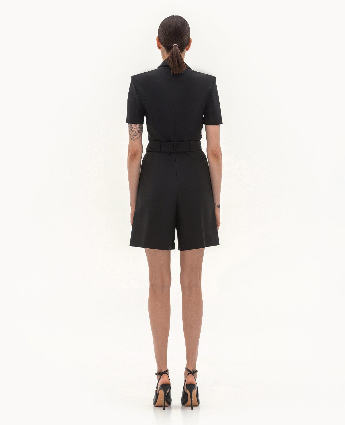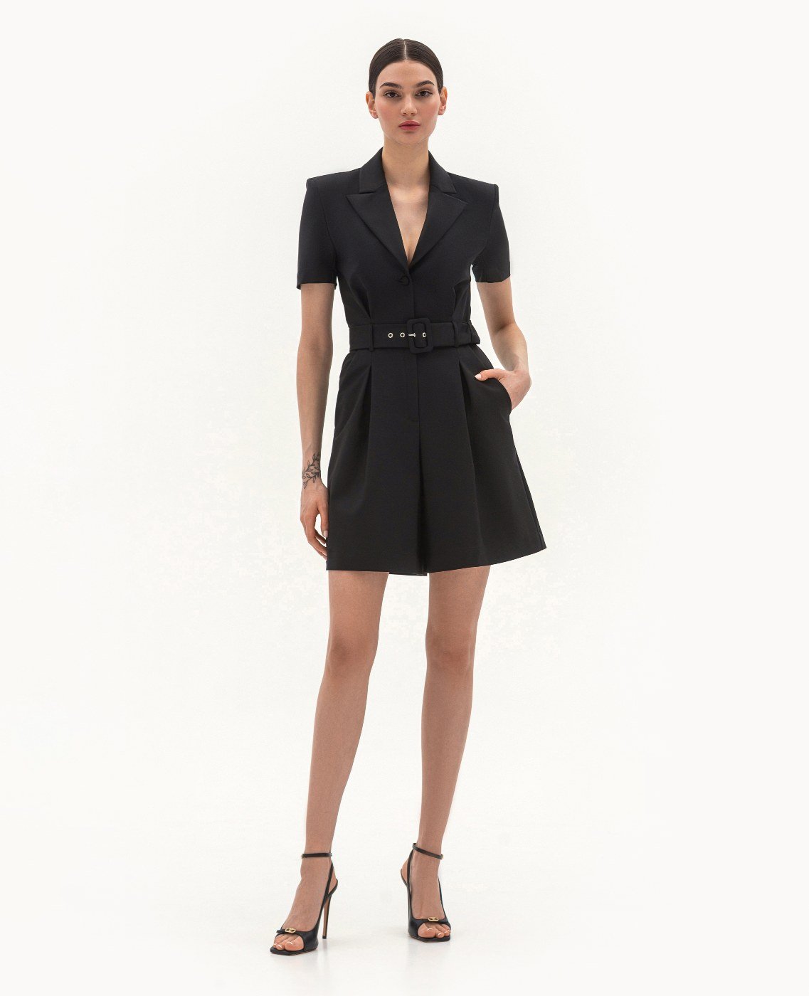 Вид изделия: элегантный комбинезон с шортами — бермудами, с воротником и лацканами, со сьемным поясом на пряжке.Силуэт, длина: свободный, приталенный, до колена. Посадка по линии талии: классическая. Плотность и вид ткани: средней плотности смесовый, хлопковый материал. Вид застежки: пуговицы, молния. Наличие подкладочной ткани: частично. Наличие и вид карманов: подкройные. Вырез горловины: V — образный. Вид рукава: втачной, короткий. Уход за изделием: Деликатная, быстрая, ручная стирка при 30 градусах, без использования агрессивных моющих средств. Размер изделия на фото: UA 40; еur 34; USA 2; INT XXS. Параметры модели на фотографии: Рост: 179см, ОГ — 89см, ОТ — 60см, ОБ — 89см.