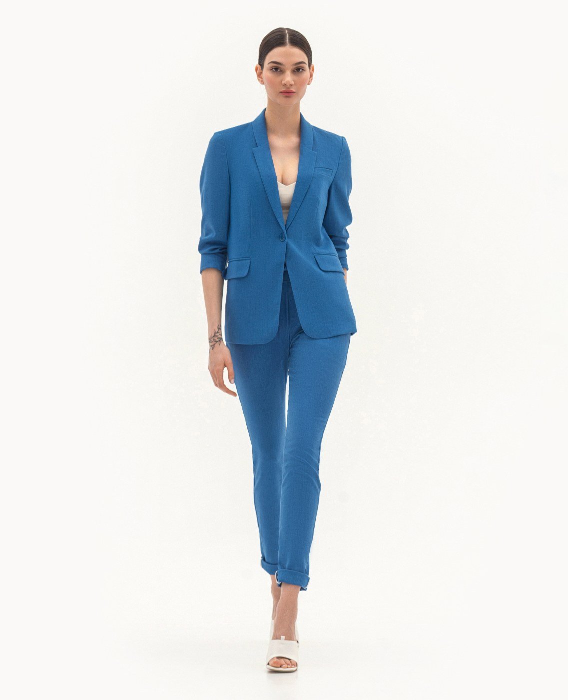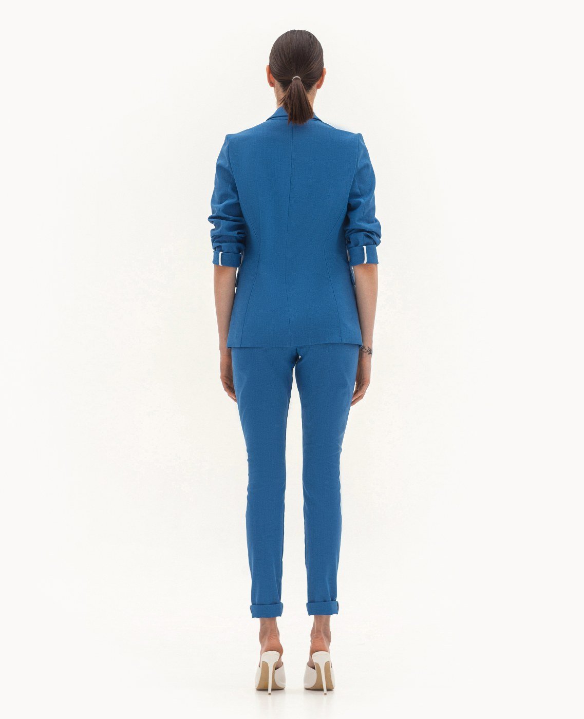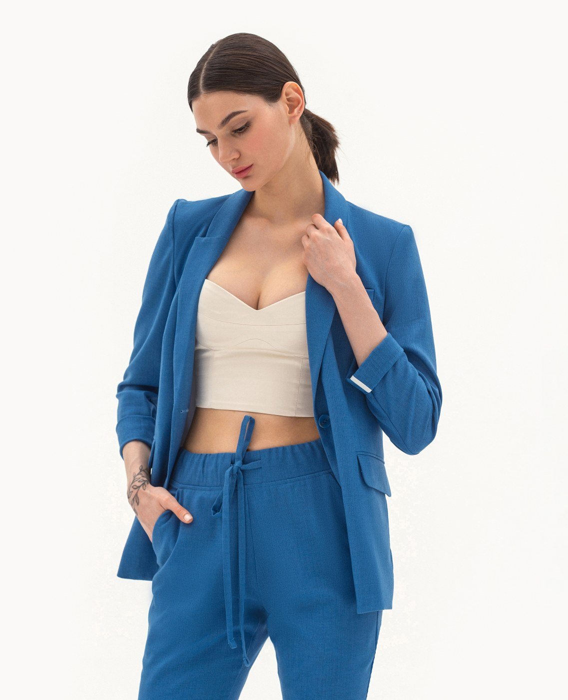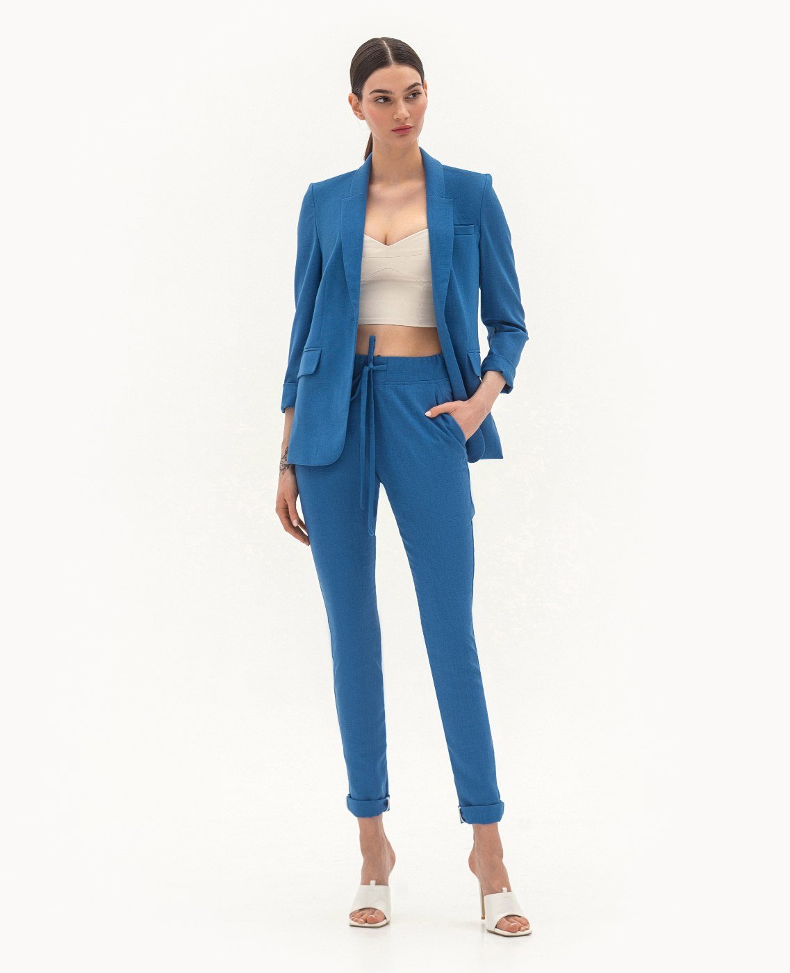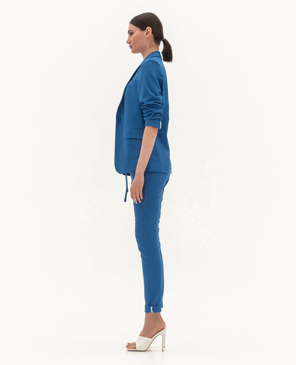 Вид изделия: комплект: блейзер и брюки с эластичным поясом. Силуэт: свободный. Посадка по линии талии: свободная, слегка заниженная. Плотность ткани: облегченный, смесовый материал. Вид застежки: пуговица и регулирующий шнурок. Наличие подкладочной ткани: присутствует. Наличие и вид карманов: карманы в рамку с клапаном в блейзере и внутренние карманы в брюках. Вырез горловины: классический. Вид рукава: втачной. Уход за изделием: Деликатная, быстрая, ручная стирка при 30 градусах, без использования агрессивных моющих средств. size UA 42; size eur 36; size USA 4; size INT XS.13.Параметры модели на фотографии: Рост: 179см, ОГ — 89см, ОТ — 60см, ОБ — 89см. 14. Размерные признаки изделия: Блейзер: Ширина по линии груди: 40р. — 90см, 42р. — 94см, 44р. — 98см, 46р. — 102см, 48р. — 106см, 50р. — 110см, 52р. — 114см. Ширина по линии талии (классическая): 40р. — 83см, 42р. — 87см, 44р. — 91см, 46р. — 95см, 48р. — 99см, 50р. — 103см, 52р. — 107см. Ширина по линии нижнего края блейзера: 40р. — 104см, 42р. — 108см, 44р. — 112см, 46р. — 116см, 48р. — 120см, 50р. — 124см, 52р. — 128см. Длина блейзера: 40р. — 68,8см, 42р. — 69,6см, 44р. — 70,4см, 46р. — 71,2см, 48р. — 72см, 50р. — 72,8см, 52р. — 73,6см. ………..Брюки: Ширина брюк по линии талии : 40р. — 87см, 42р. — 91см, 44р. — 95см, 46р. — 99см, 48р. — 103см, 50р. — 107см, 52р. — 111см. Ширина брюк по линии бедер: 40р. — 104,6см, 42р. — 108,6см, 44р. — 112,6см, 46р. — 116,6см, 48р. — 120,6см, 50р. — 124,6см, 52р. — 128,6см. Длина брюк по боковому шву: 40р. — 90,5см, 42р. — 91см, 44р. — 91,5см, 46р. — 92см, 48р. — 92,5см, 50р. — 93см, 52р. — 93,5см. Длина брюк шаговому шву: 40р. — 67,3см, 42р. — 67,3см, 44р. — 67,3см, 46р. — 67,3см, 48р. — 67,3см, 50р. — 67,3см, 52р. — 67,3см.