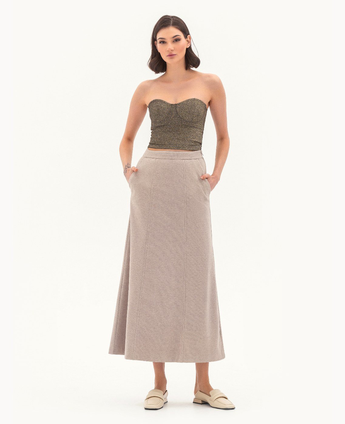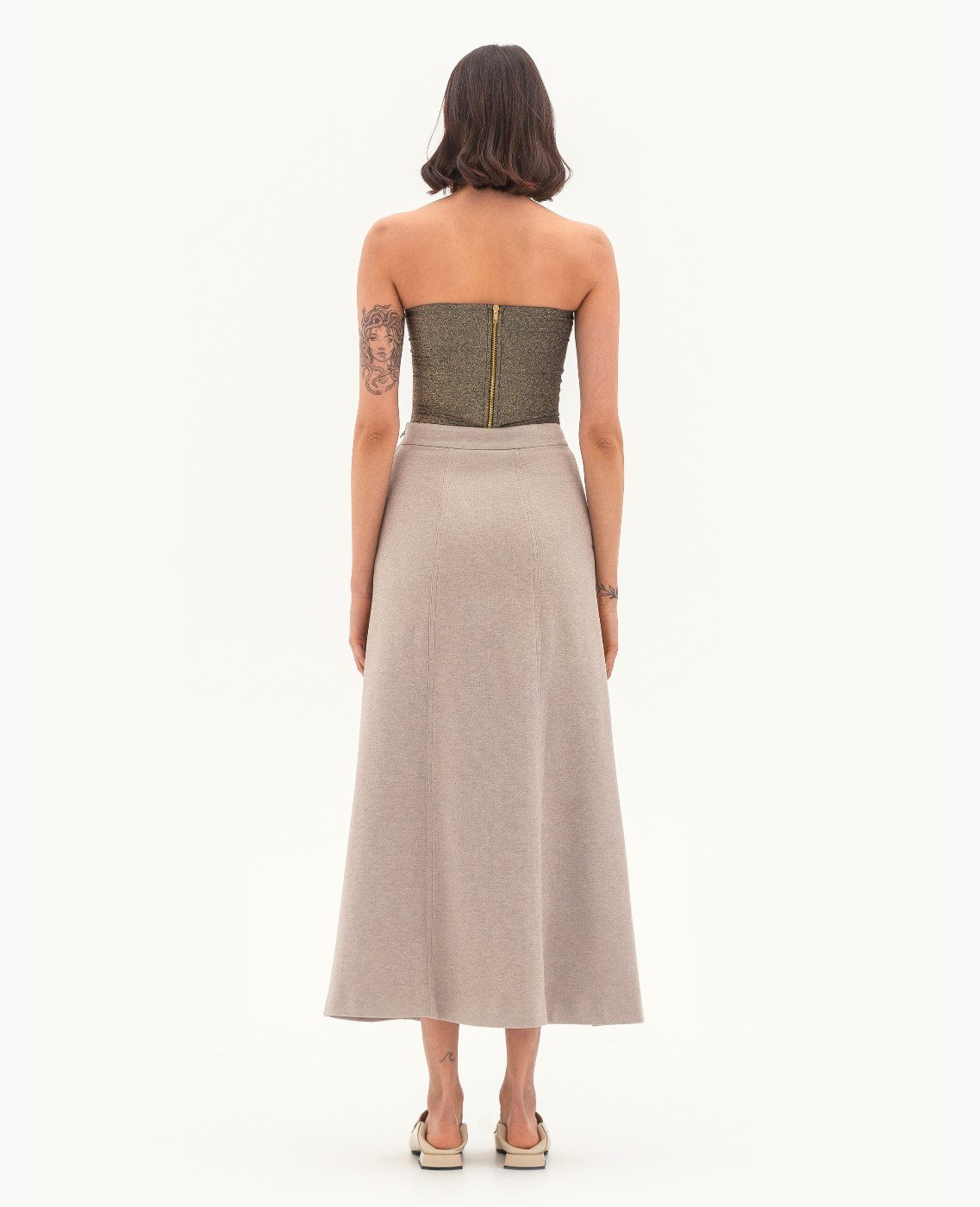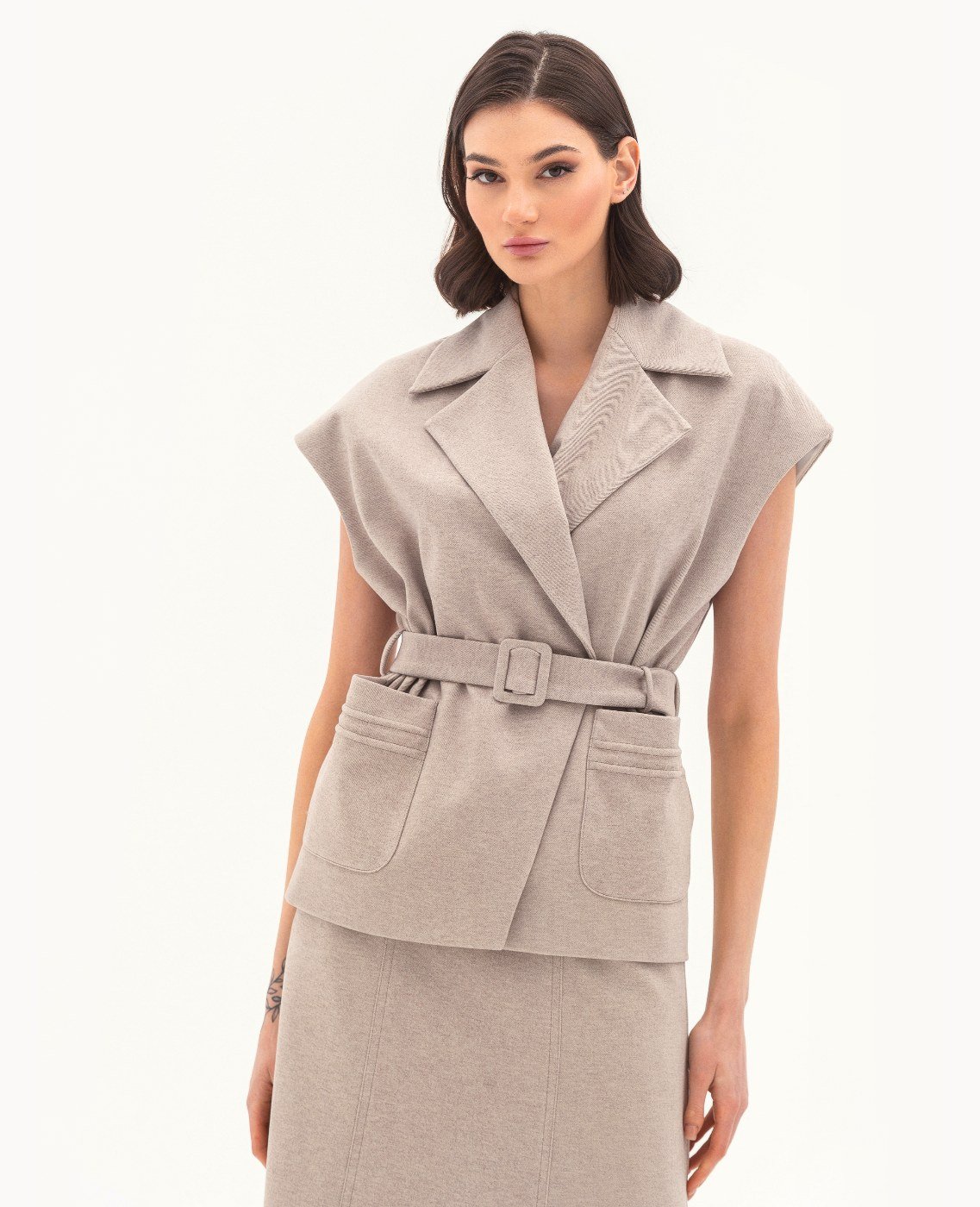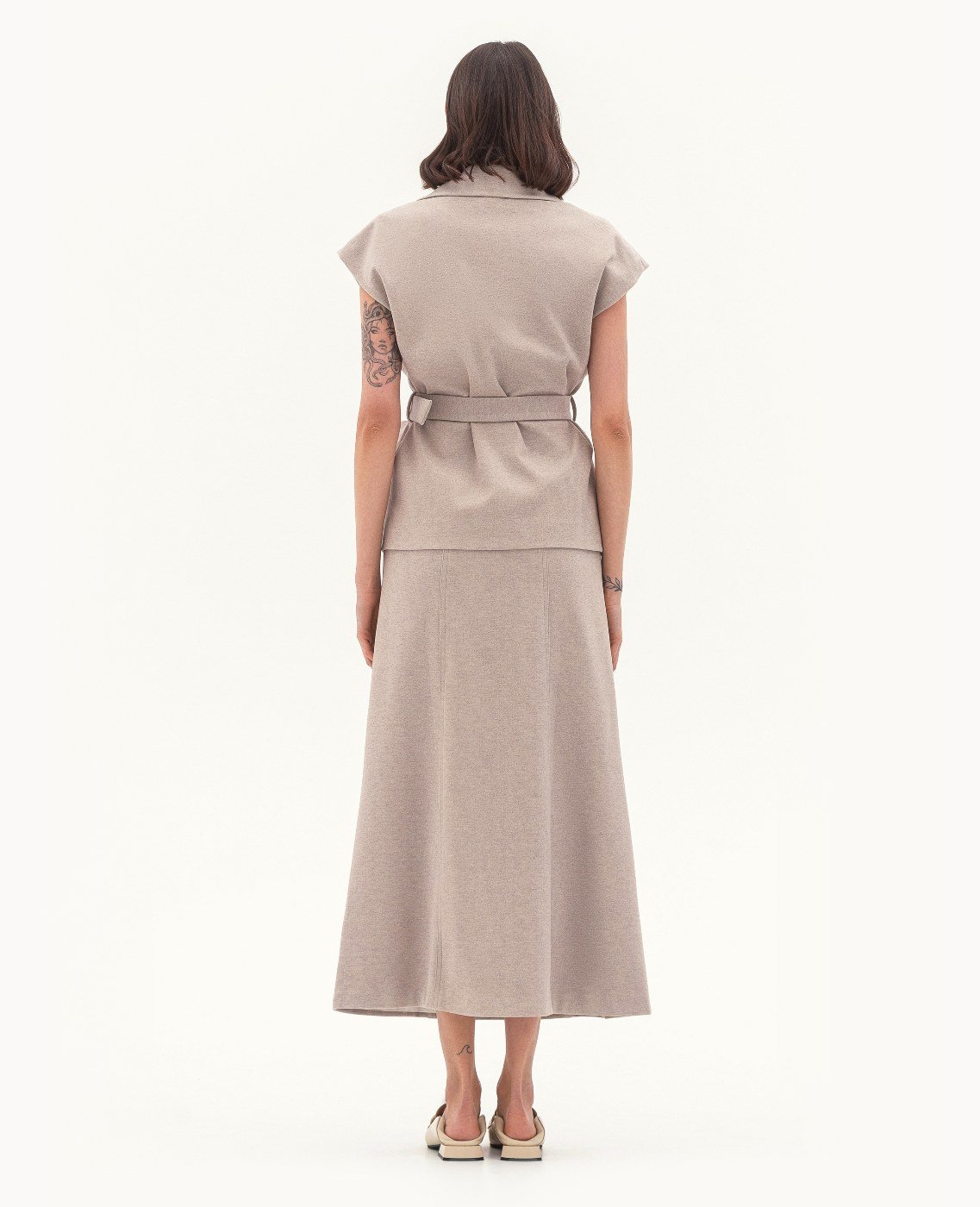 Вид изделия: комплект, состоящий из обьемного, двубортного жилета с воротником и лацканами, настрочными карманами и юбки-трапеции с четырьмя клиньями, в комплектации со сьемным поясом. Силуэт, длина: свободный, макси. Посадка по линии талии: классическая. Плотность и вид ткани: плотный, очень теплый и мягкий материал, тактильно имитирующий кашемир. Вид застежки: кнопки в жилете, молния в юбке. Наличие подкладочной ткани: присутствует. Наличие и вид карманов: настрочные в жилете, подкройные в юбке. Вырез горловины: V-образный. Вид рукава: без рукава. Уход за изделием: Деликатная, быстрая, ручная стирка при 30 градусах, без использования агрессивных моющих средств. Размер изделия на фото: UA 40; еur 34; USA 2; INT XXS. Параметры модели на фотографии: Рост: 179см, ОГ — 89см, ОТ — 60см, ОБ — 89см.