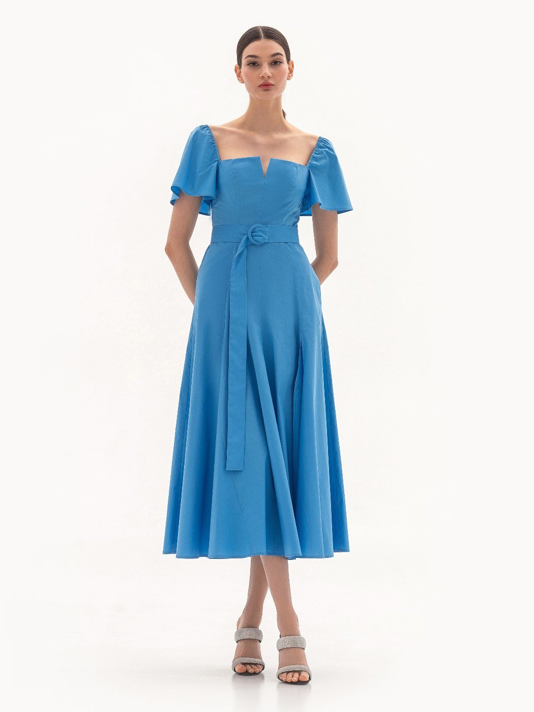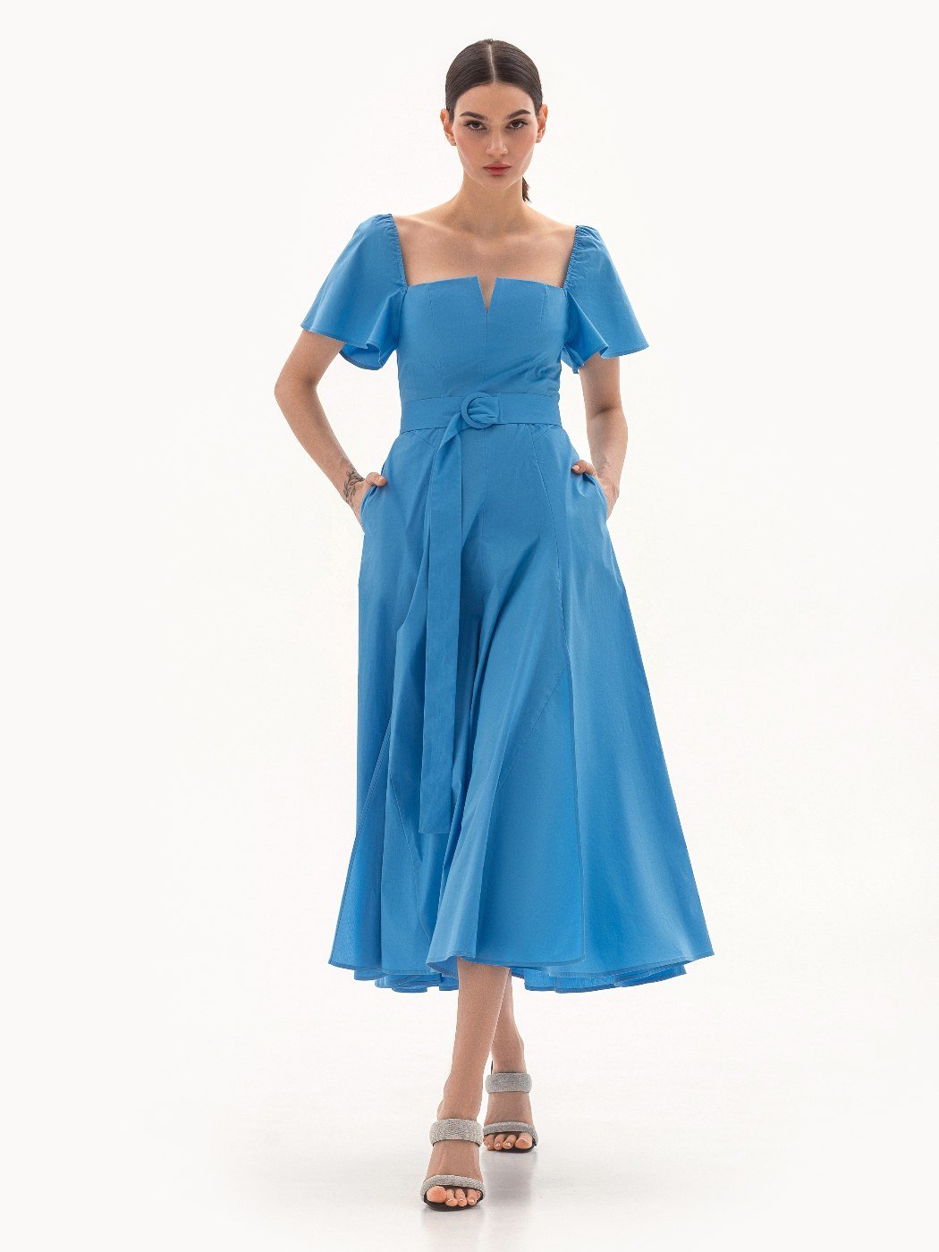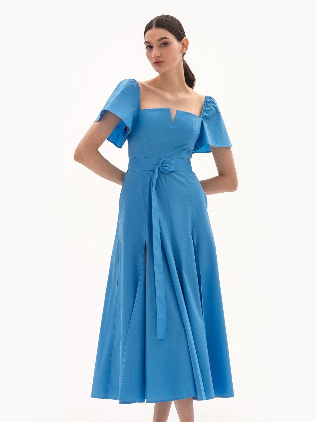 Вид изделия: расклешенное платье в длине макси, с разрезами по юбке. Силуэт, длина: расклешенный, полуприлегающий, в длине макси. Посадка по линии талии: классическая. Плотность и вид ткани: тонкий, хлопковый, текстильный материал. Вид застежки: молния. Наличие подкладочной ткани: отсутствуют. Наличие и вид карманов: в боковых швах. Вырез горловины: фигурный, карэ. Вид рукава: полуреглан, на половину проймы, собранный по верхнему и нижнему краям на эластичную ленту (резинку). Особенности изделия: нет. Уход за изделием: Деликатная, быстрая, ручная стирка при 30 градусах, без использования агрессивных моющих средств. Размер изделия на фото: UA 40; еur 34; USA 2; INT XXS. Параметры модели на фотографии: Рост: 179см, ОГ — 89см, ОТ — 60см, ОБ — 89см.