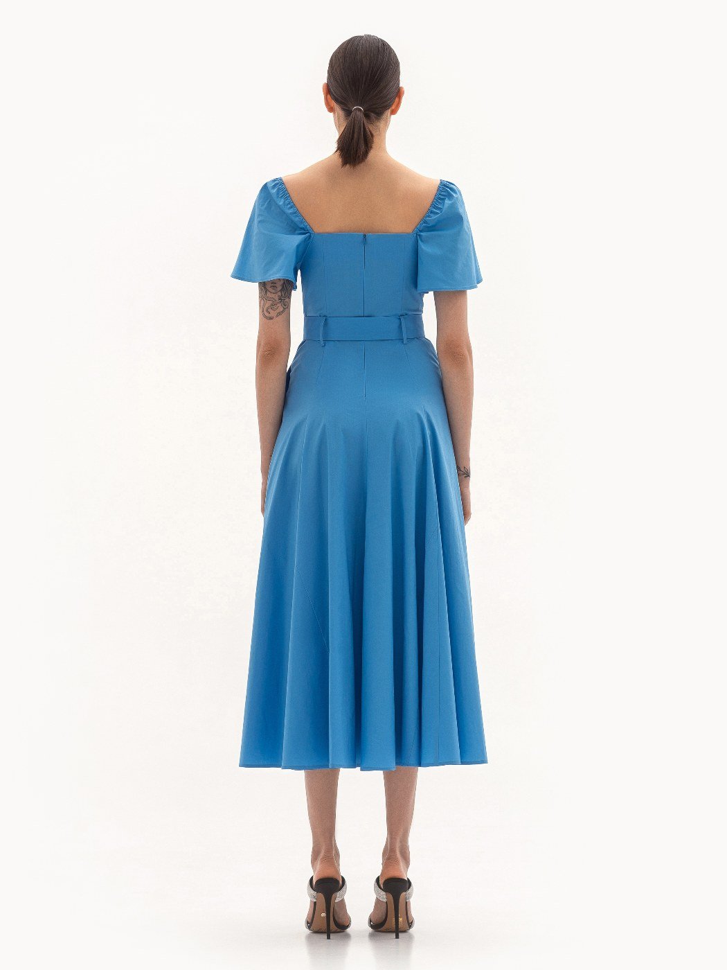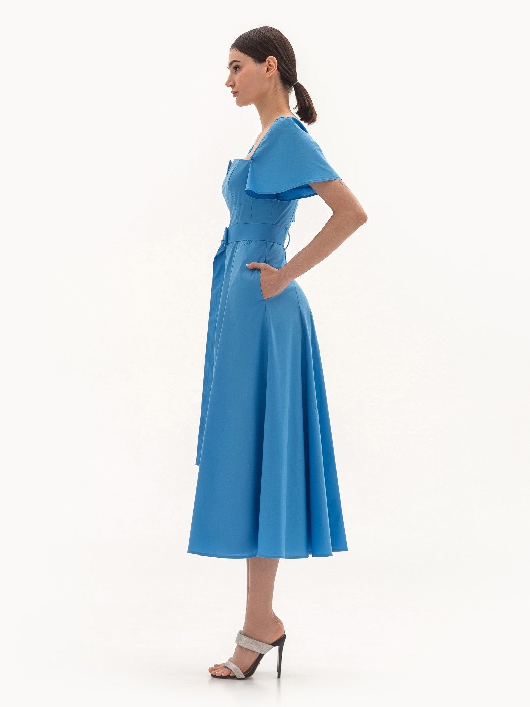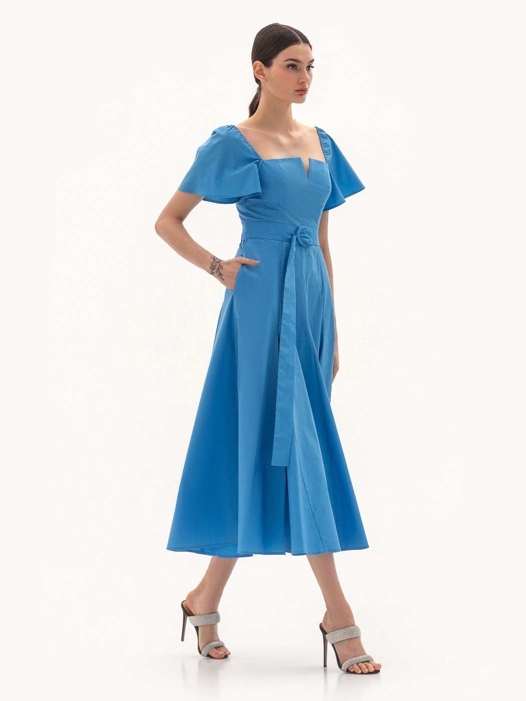 Вид изделия: расклешенное платье в длине макси, с разрезами по юбке. Силуэт, длина: расклешенный, полуприлегающий, в длине макси. Посадка по линии талии: классическая. Плотность и вид ткани: тонкий, хлопковый, текстильный материал. Вид застежки: молния. Наличие подкладочной ткани: отсутствуют. Наличие и вид карманов: в боковых швах. Вырез горловины: фигурный, карэ. Вид рукава: полуреглан, на половину проймы, собранный по верхнему и нижнему краям на эластичную ленту (резинку). Особенности изделия: нет. Уход за изделием: Деликатная, быстрая, ручная стирка при 30 градусах, без использования агрессивных моющих средств. Размер изделия на фото: UA 40; еur 34; USA 2; INT XXS. Параметры модели на фотографии: Рост: 179см, ОГ — 89см, ОТ — 60см, ОБ — 89см.