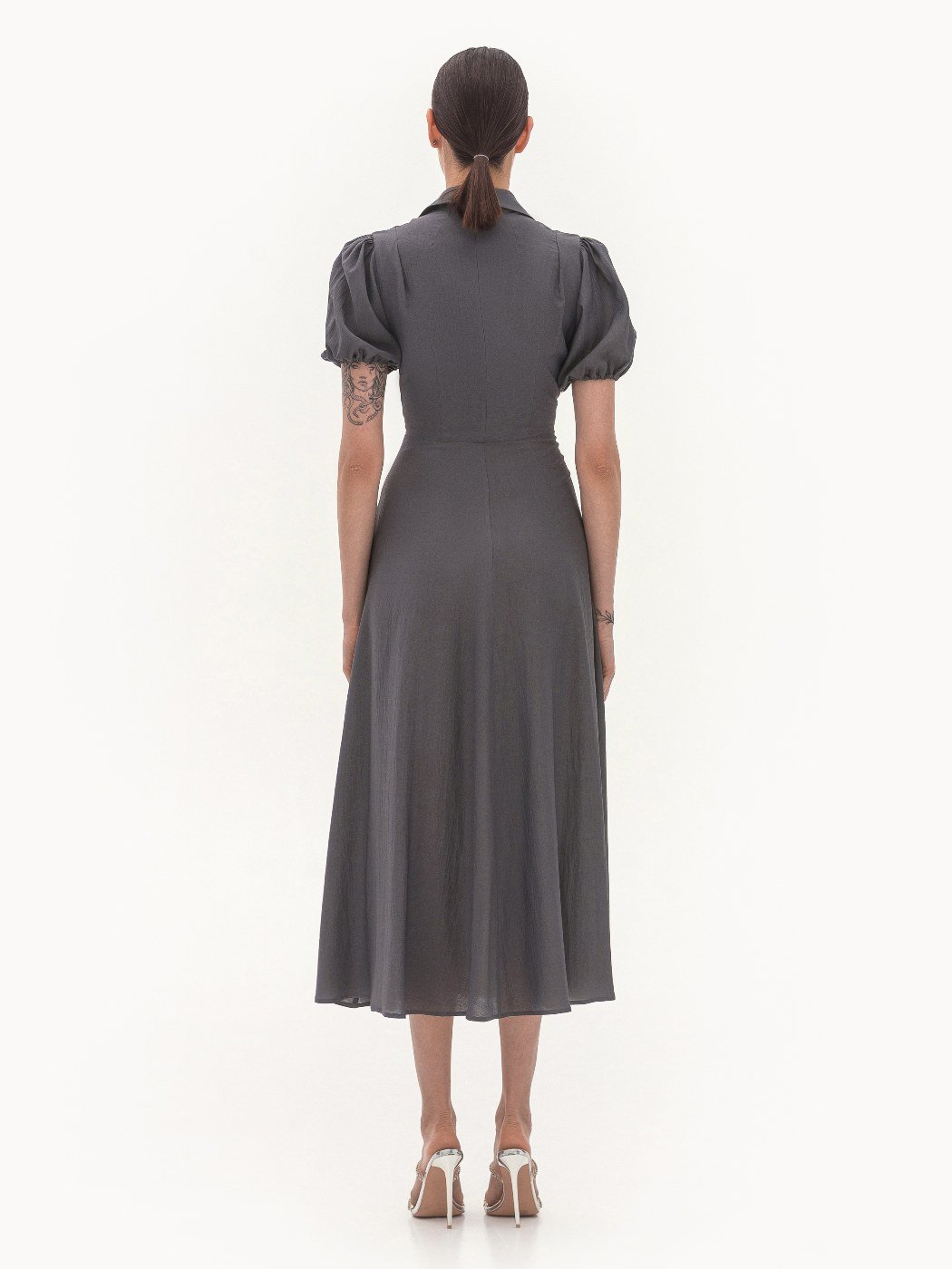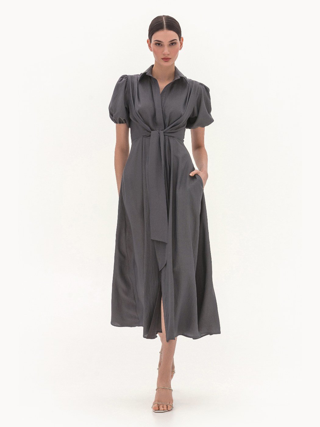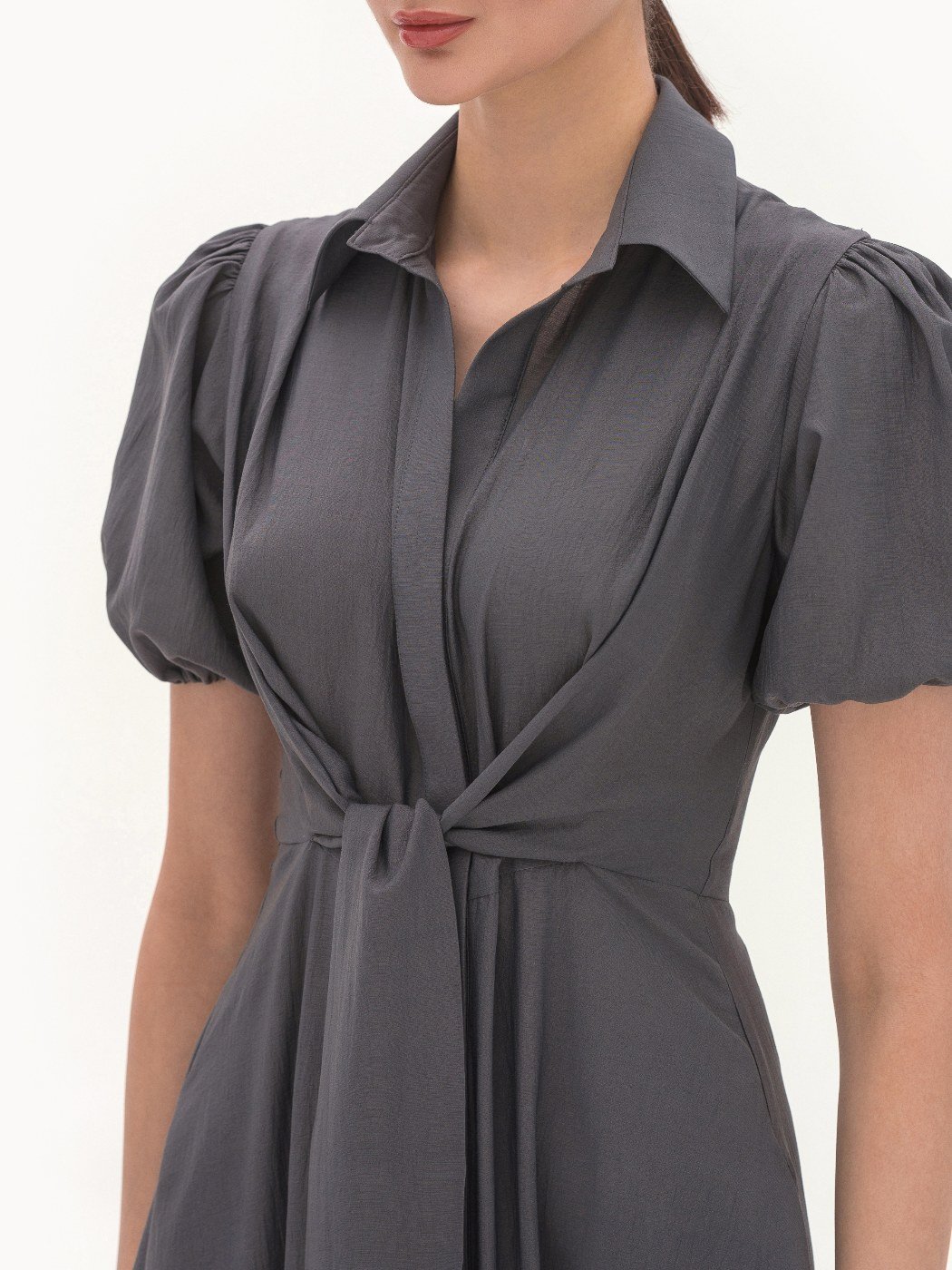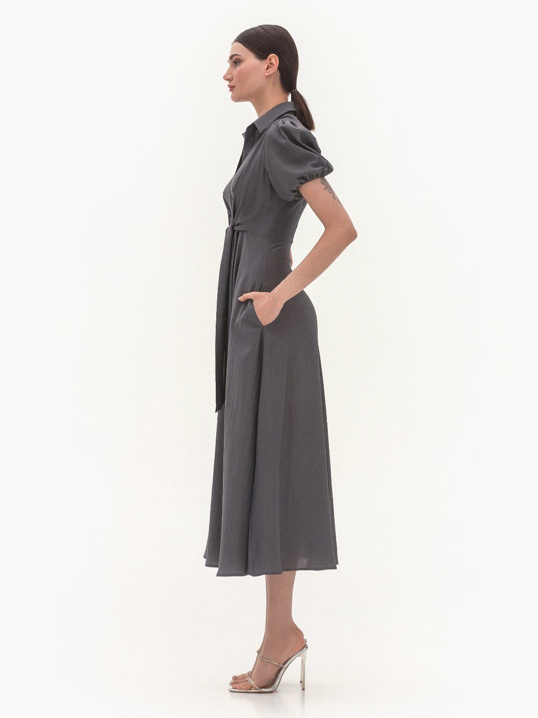 Вид изделия: расклешенное платье, с воротником, акцентными рукавами на резинке по низу, на суппатной застежке, с поясами-завязками, регулирующими линию талии. Силуэт, длина: расклешенный, свободный, макси. Посадка по линии талии: классическая. Плотность и вид ткани: тонкий материал. Вид застежки: суппатная застежка на пуговицах. Наличие и вид карманов: в боковых швах. Вид рукава: втачной, присобранный, на резинке по низу. Уход за изделием: Деликатная, быстрая, ручная стирка при 30 градусах, без использования агрессивных моющих средств. Размер изделия на фото: UA 40; еur 34; USA 2; INT XXS. Параметры модели на фотографии: Рост: 179см, ОГ — 89см, ОТ — 60см, ОБ — 89см.