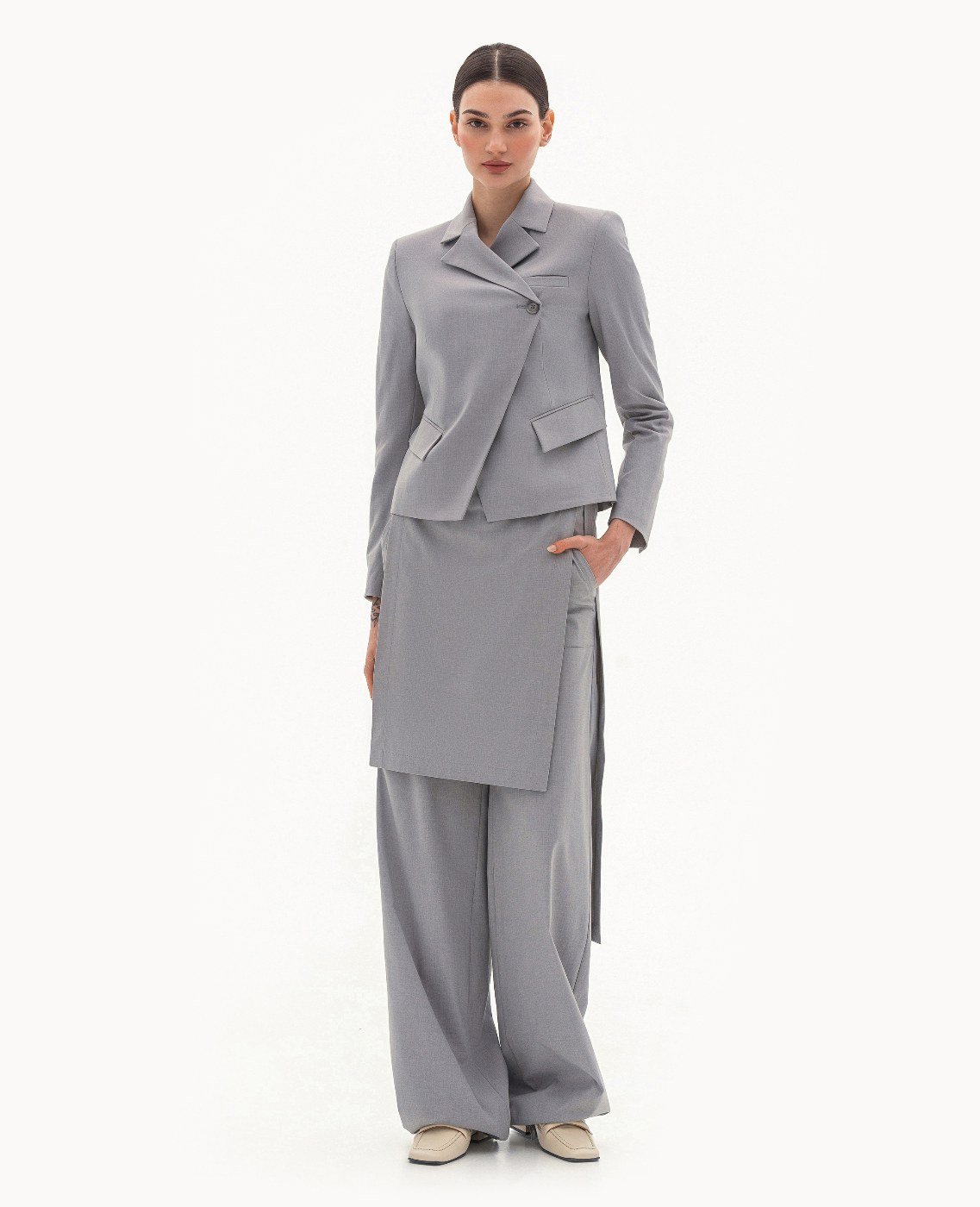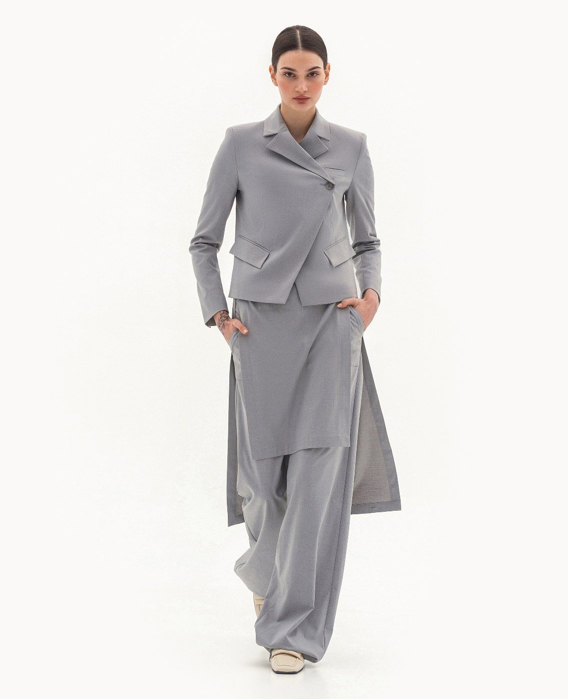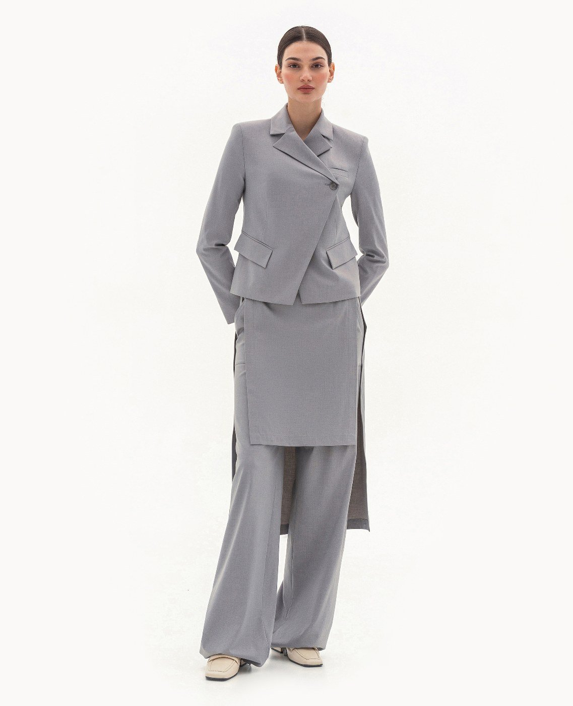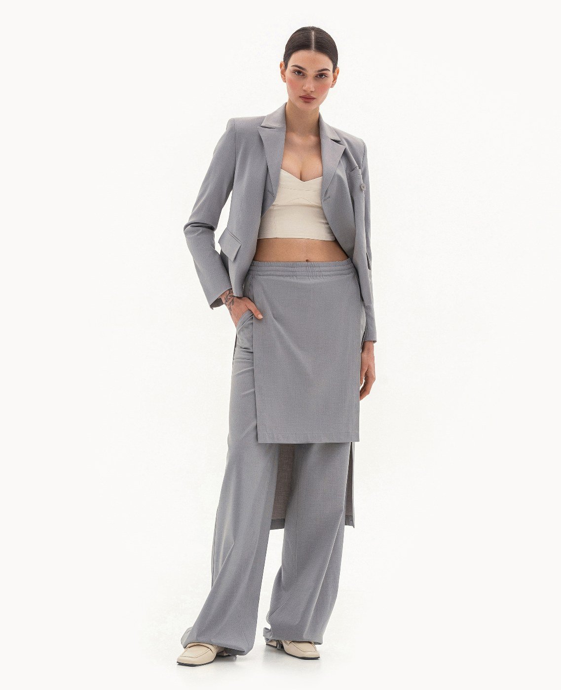Комплект: жилет, брюки, юбка (серо-зеленый)