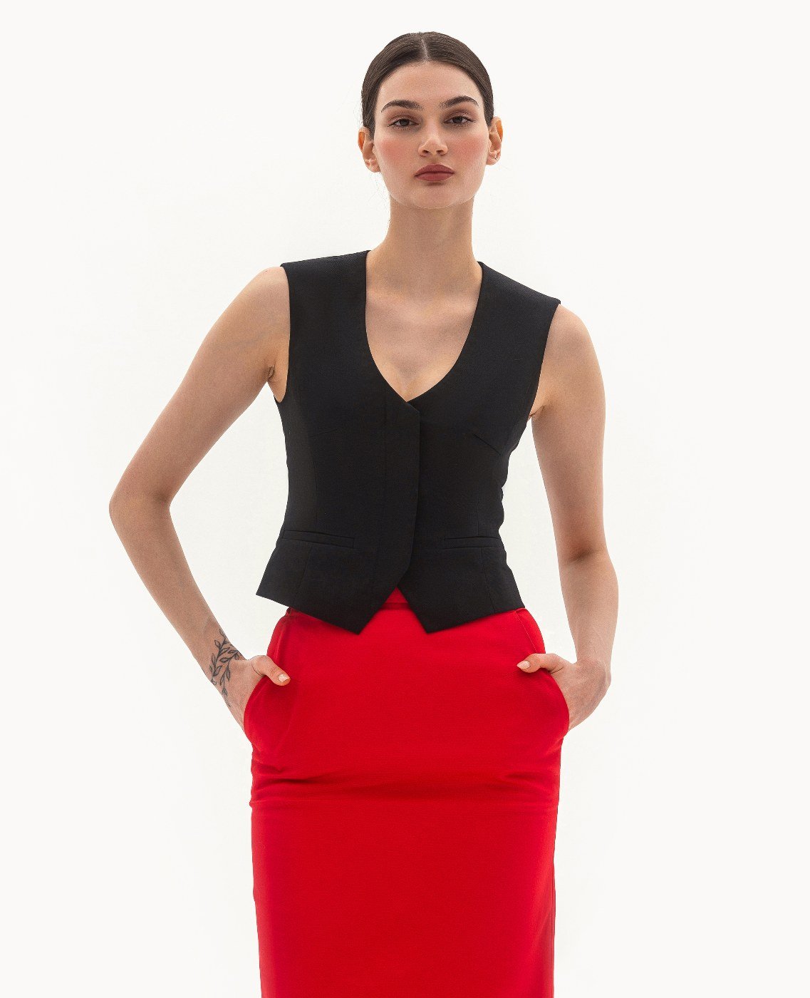 Вид изделия: приталенный жилет, полного прилегания, с суппатной застежкой. Силуэт, длина: приталенный, прилегающий. Посадка по линии талии: классическая. Плотность и вид ткани: средней плотности, хлопковый, текстильный материал. Вид застежки: пуговицы. Наличие подкладочной ткани: присутствует. Наличие и вид карманов: в рамку. Уход за изделием: Деликатная, быстрая, ручная стирка при 30 градусах, без использования агрессивных моющих средств. Размер изделия на фото: UA 40; еur 34; USA 2; INT XXS. Параметры модели на фотографии: Рост: 179см, ОГ — 89см, ОТ — 60см, ОБ — 89см.