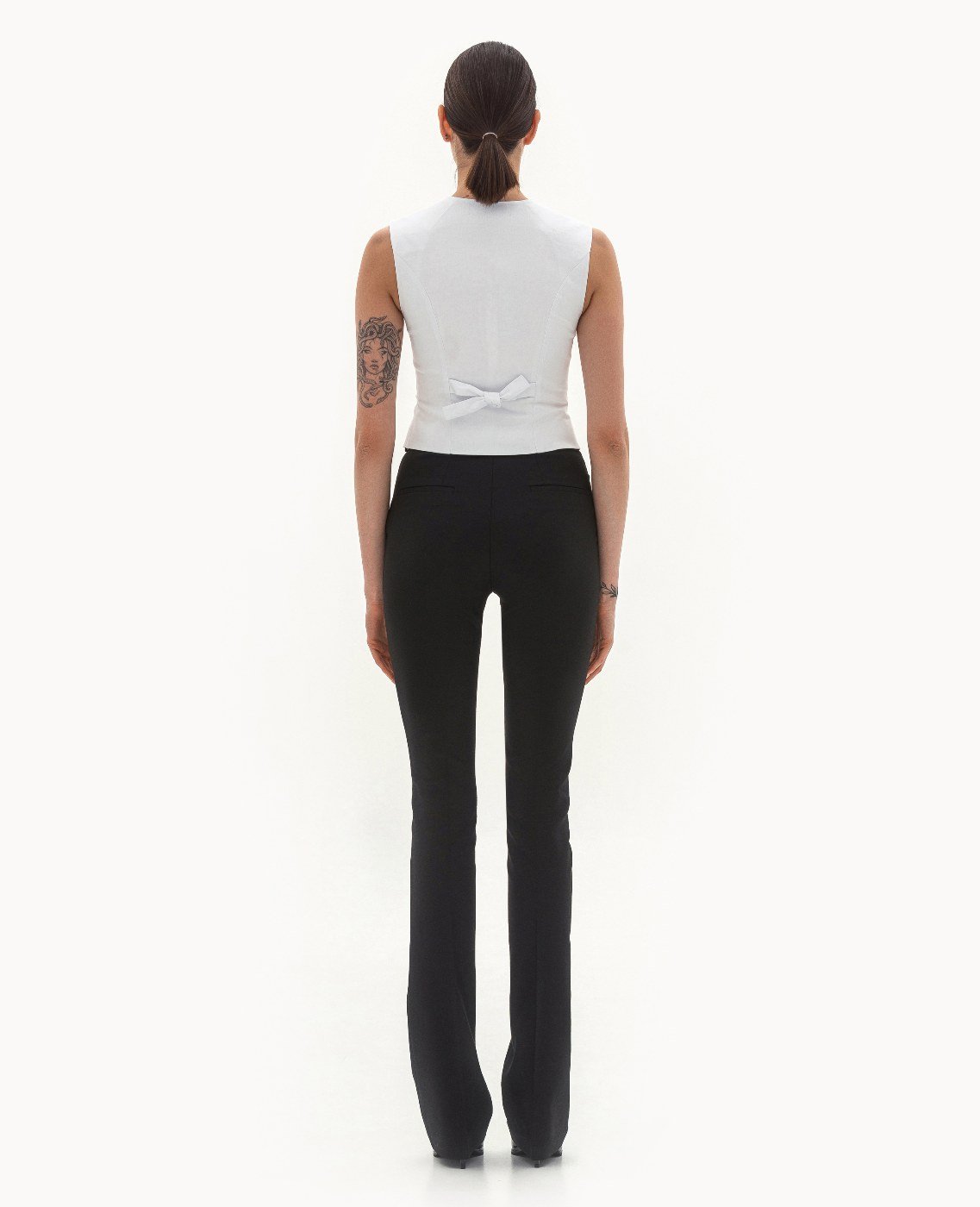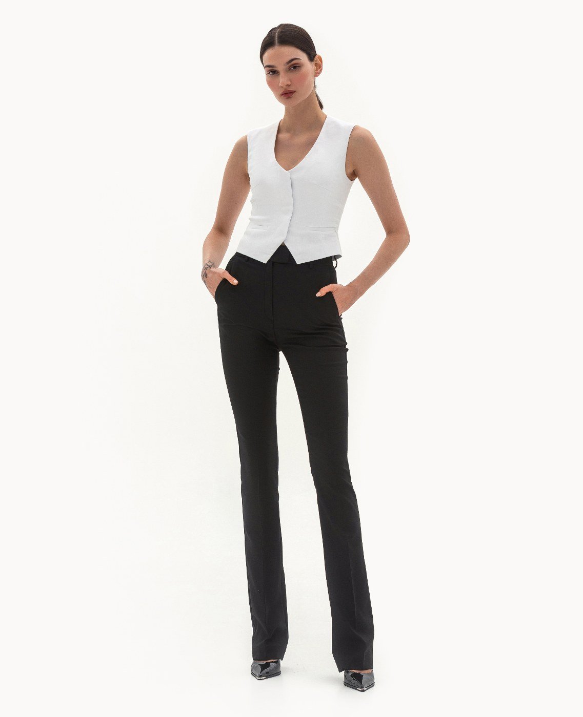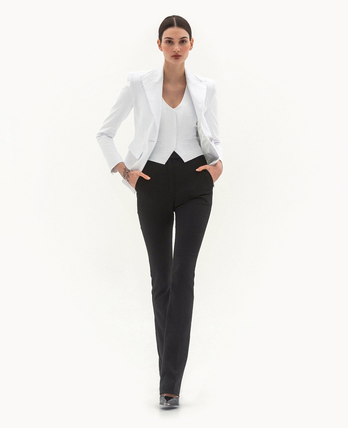 Вид изделия: приталенный жилет полного прилегания с суппастной застёжкой. Силуэт, длина: приталенный, прилегающий. Посадка по талии: классическая. Плотность и вид ткани: хлопковый текстильный материал средней плотности. Вид застёжки: пуговицы. Подкладка: присутствует. Карманы: карманы в рамку.