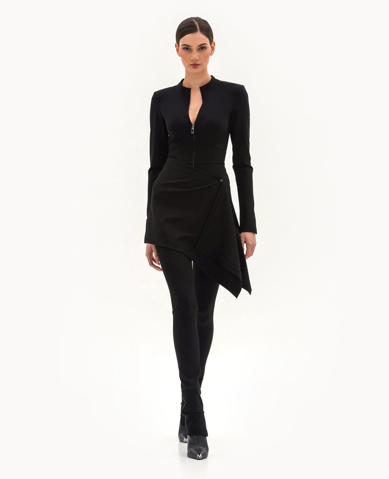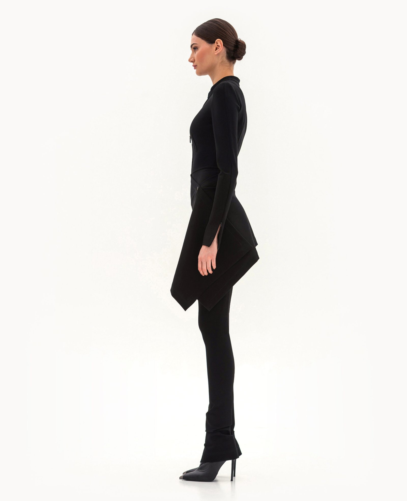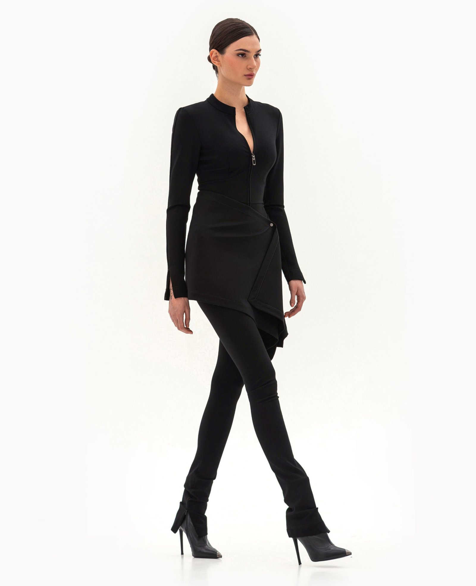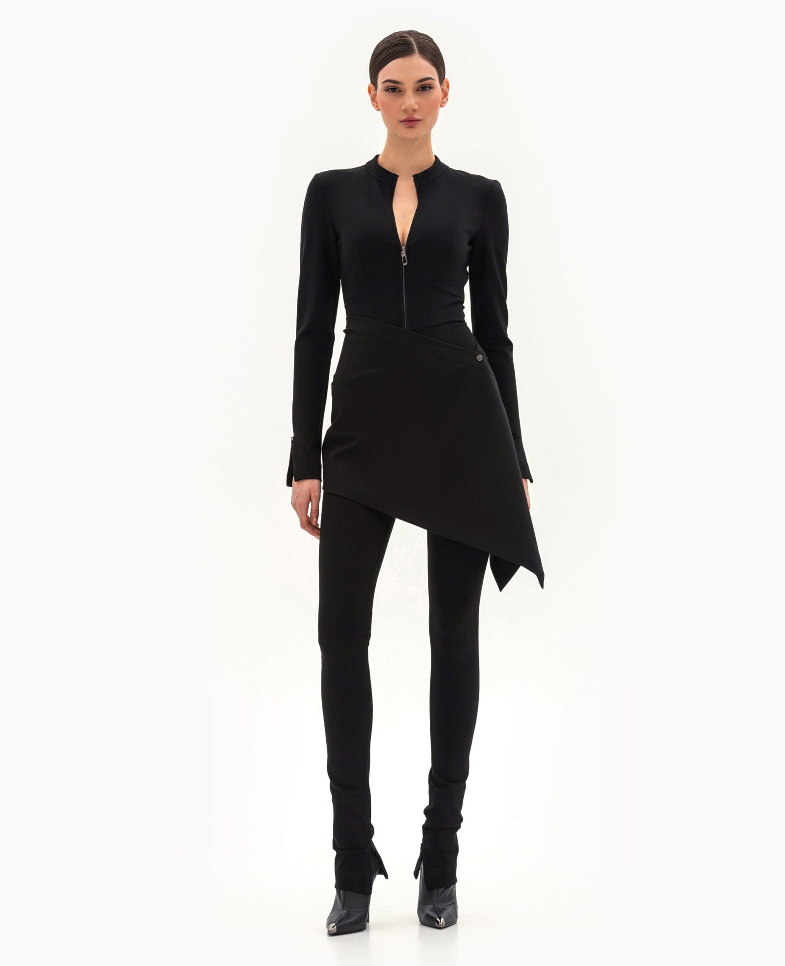 Вид виробу: комплект - комбінезон та спідниця на запах. Комбінезон з множинними рельєфними швами та блискавками по поличці, рукавах та низу штанів.
