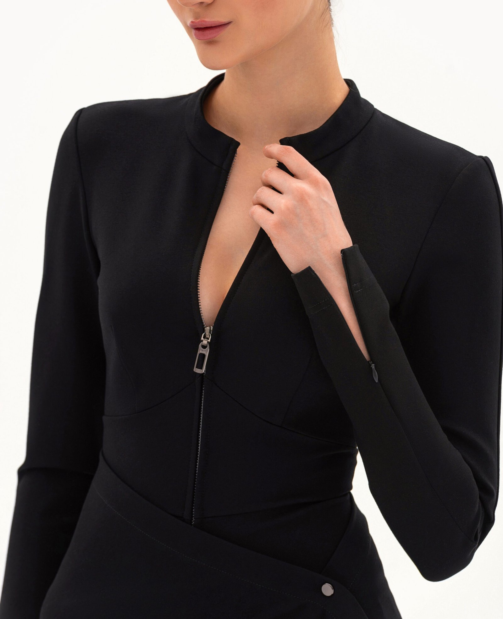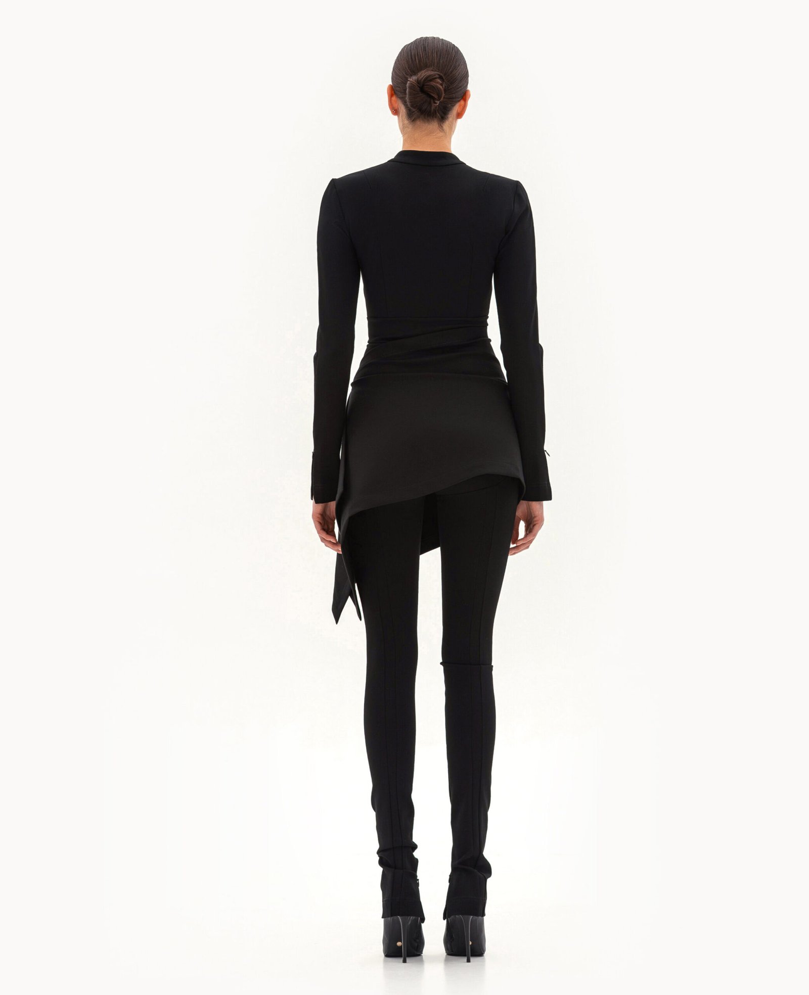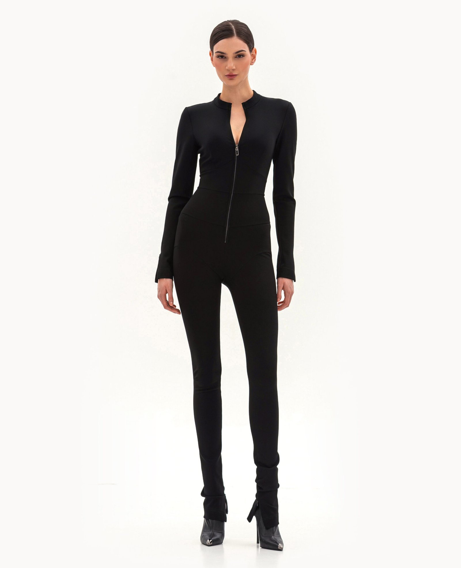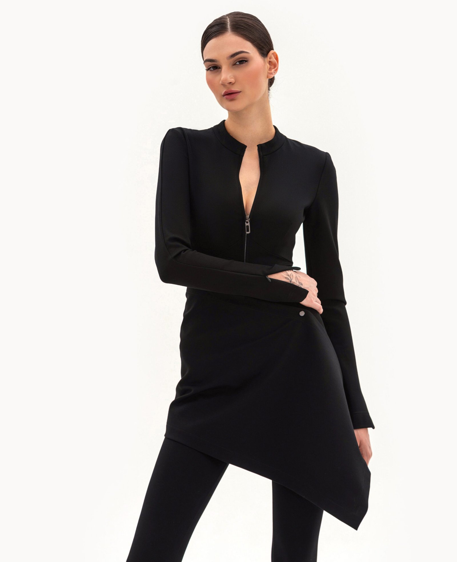 Вид виробу: комплект - комбінезон та спідниця на запах. Комбінезон з множинними рельєфними швами та блискавками по поличці, рукавах та низу штанів.