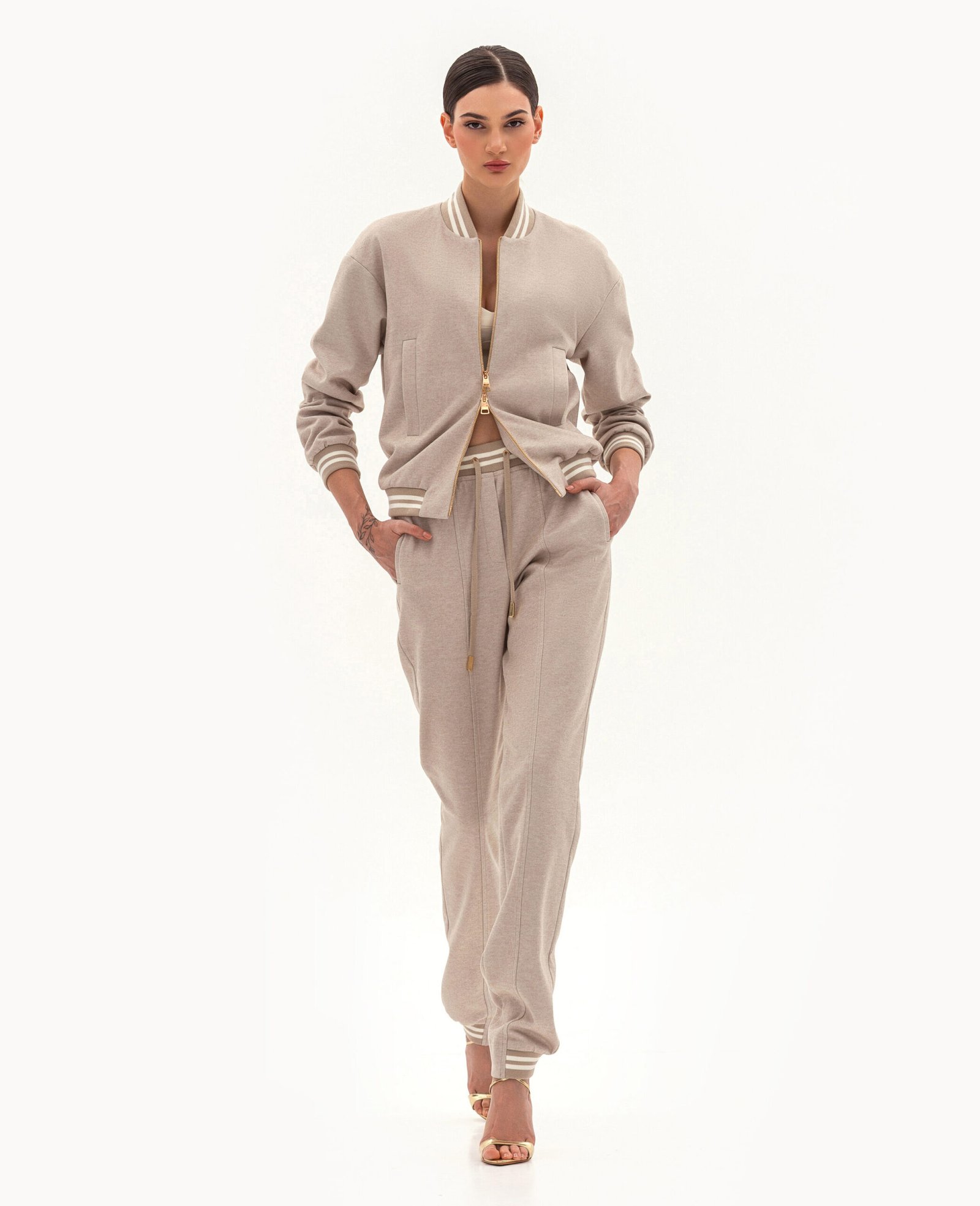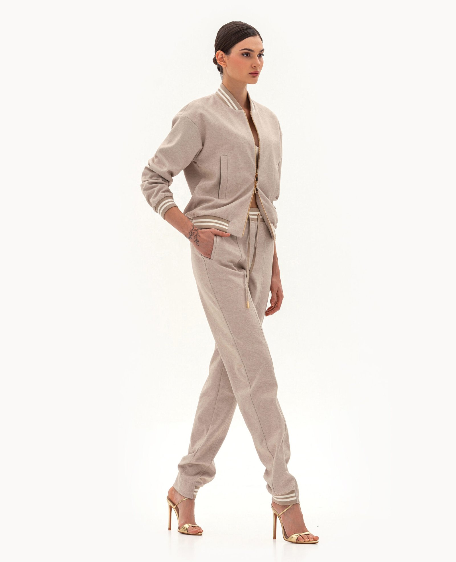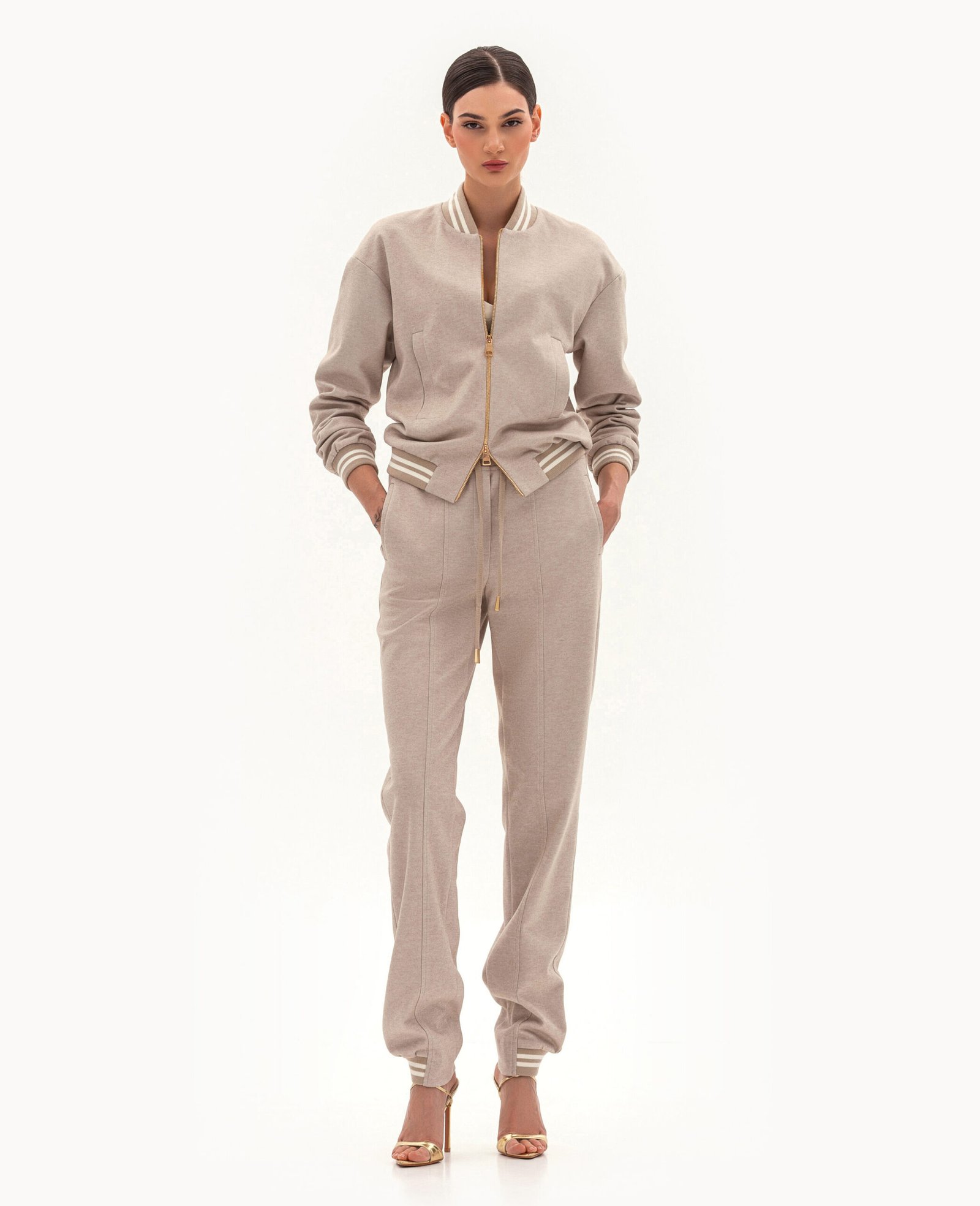Вигляд виробу: комплект - zip-худі та штани в стилі sport glam із щільного, теплого, м'якого полотна, декорований металевою фурнітурою та контрастними в'язаними манжетами.