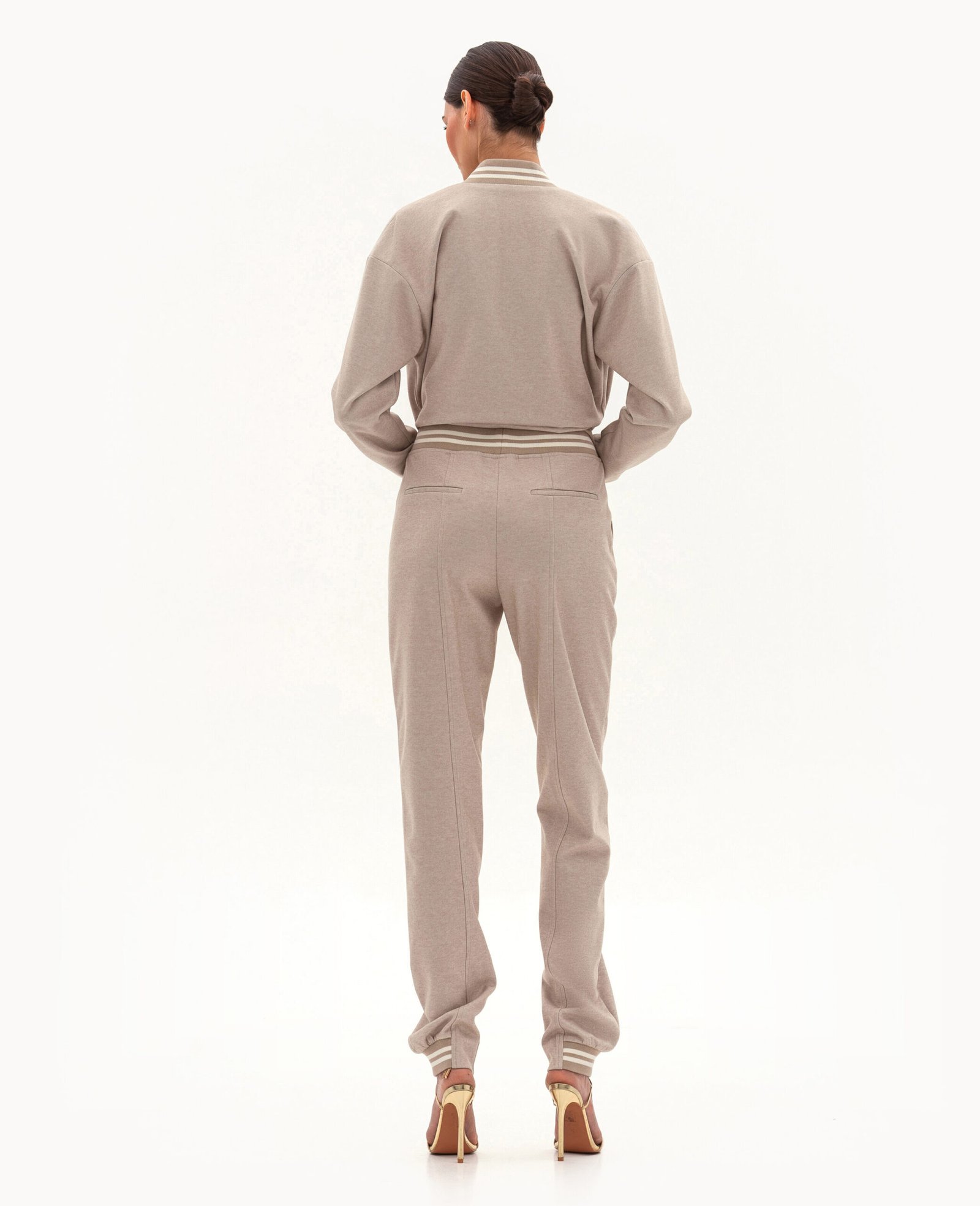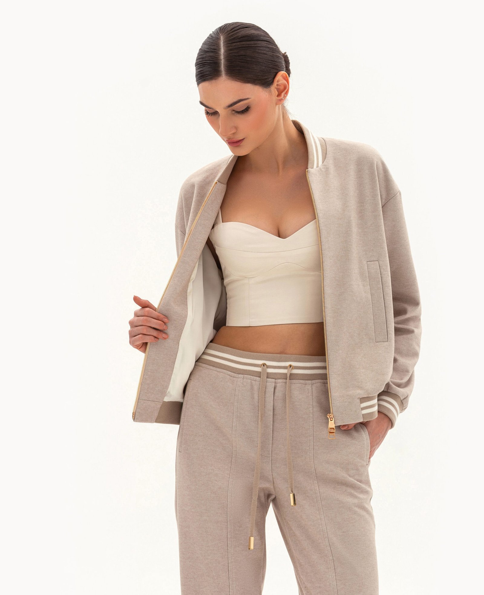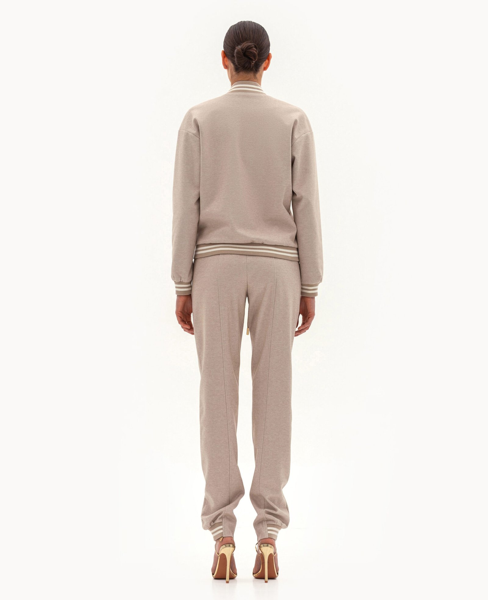 Вигляд виробу: комплект - zip-худі та штани в стилі sport glam із щільного, теплого, м'якого полотна, декорований металевою фурнітурою та контрастними в'язаними манжетами.
