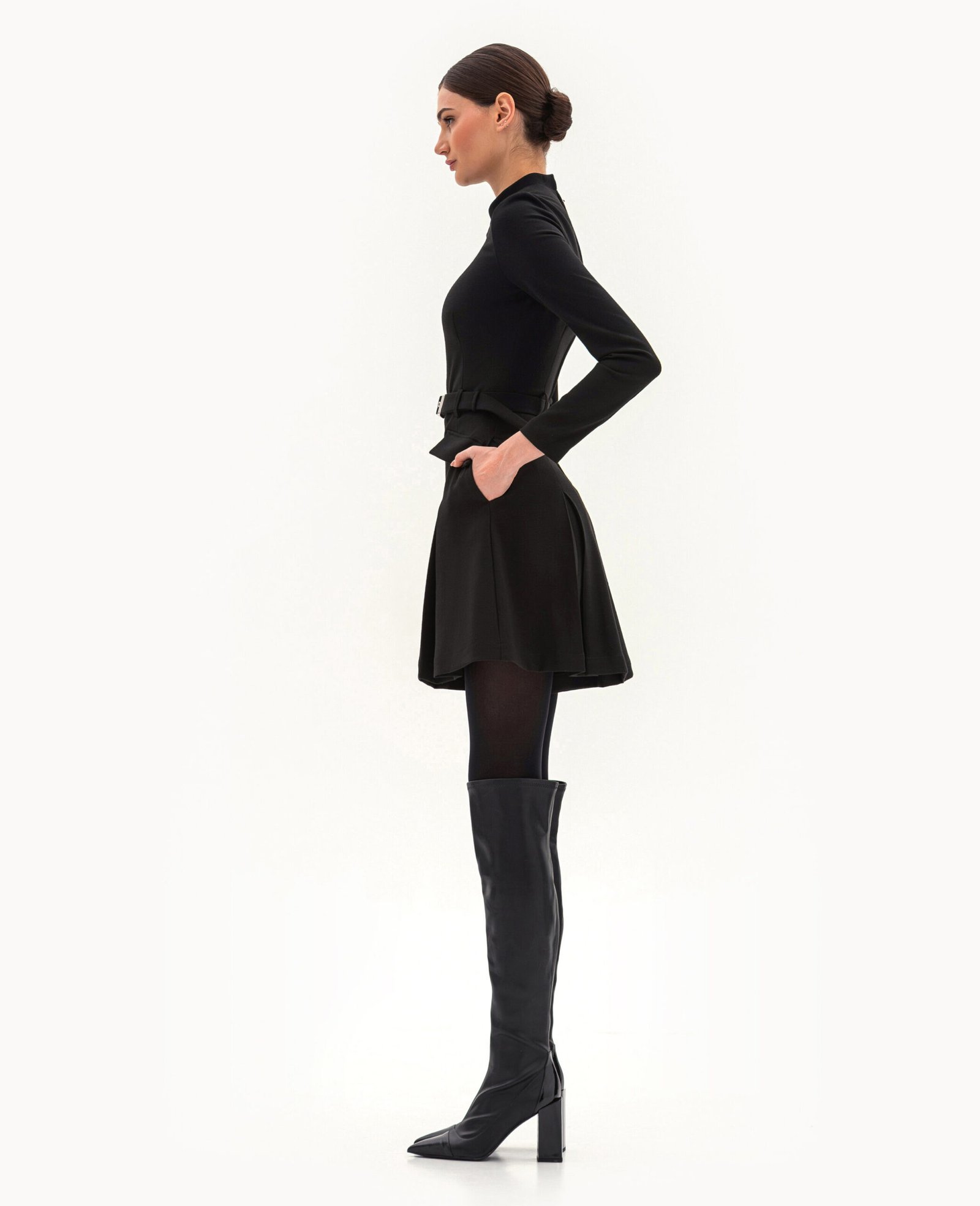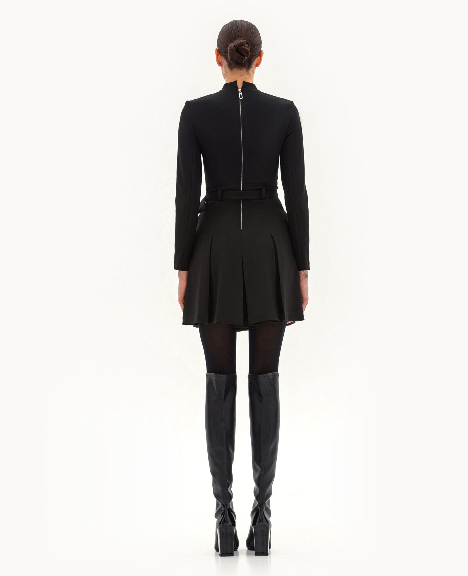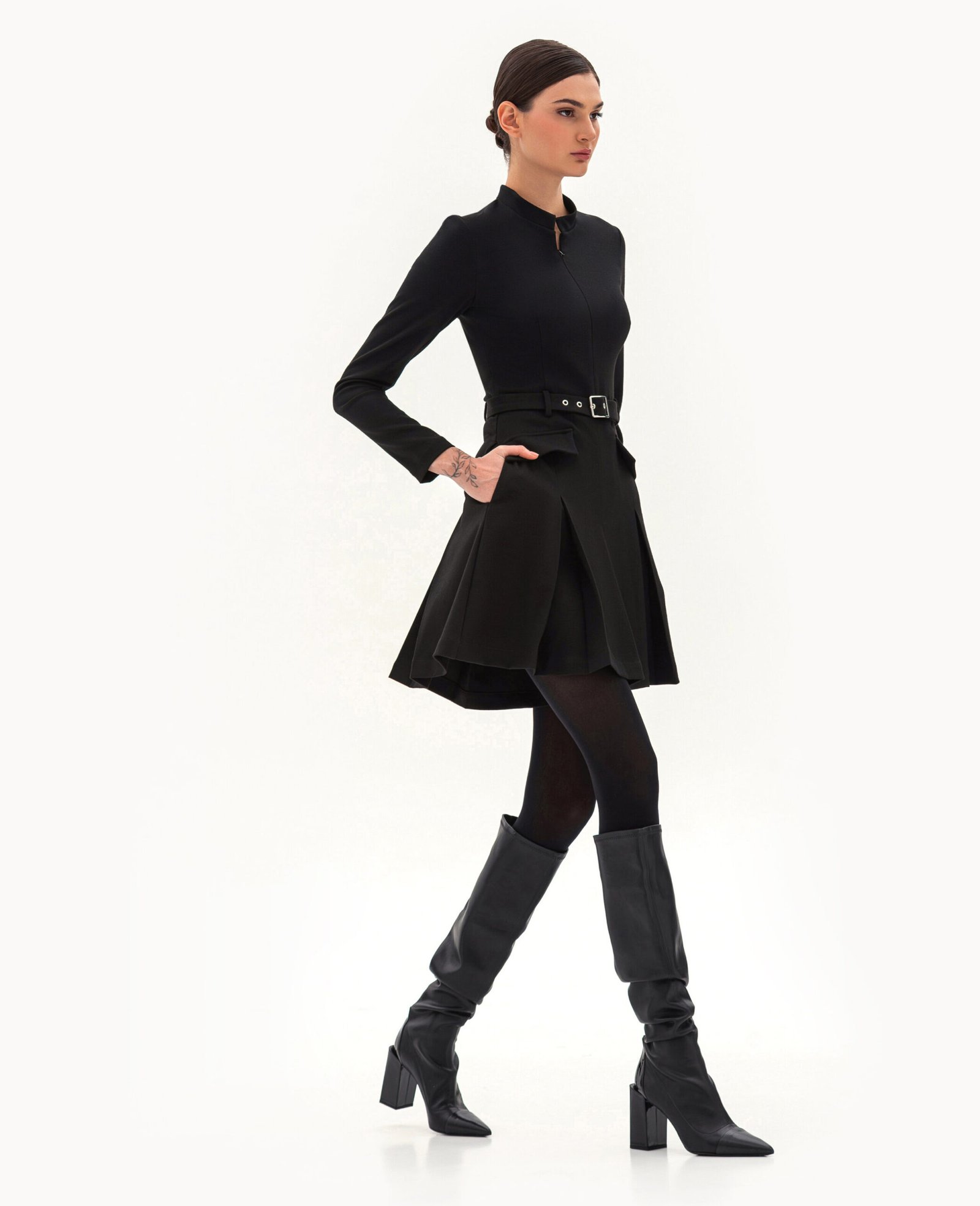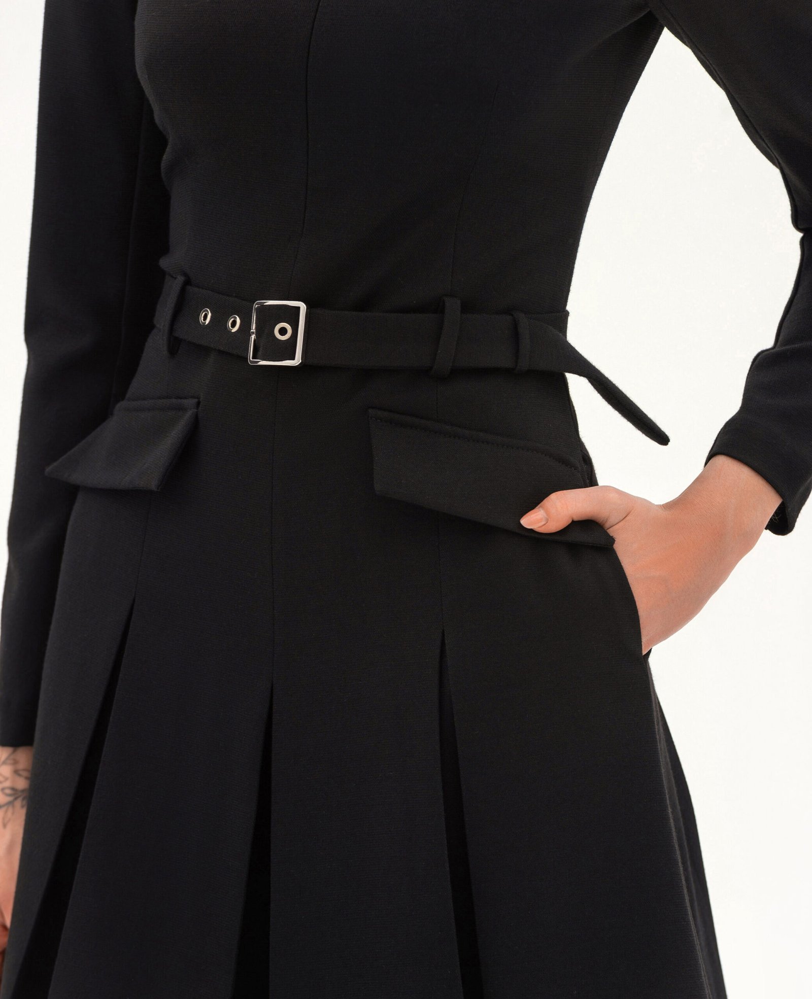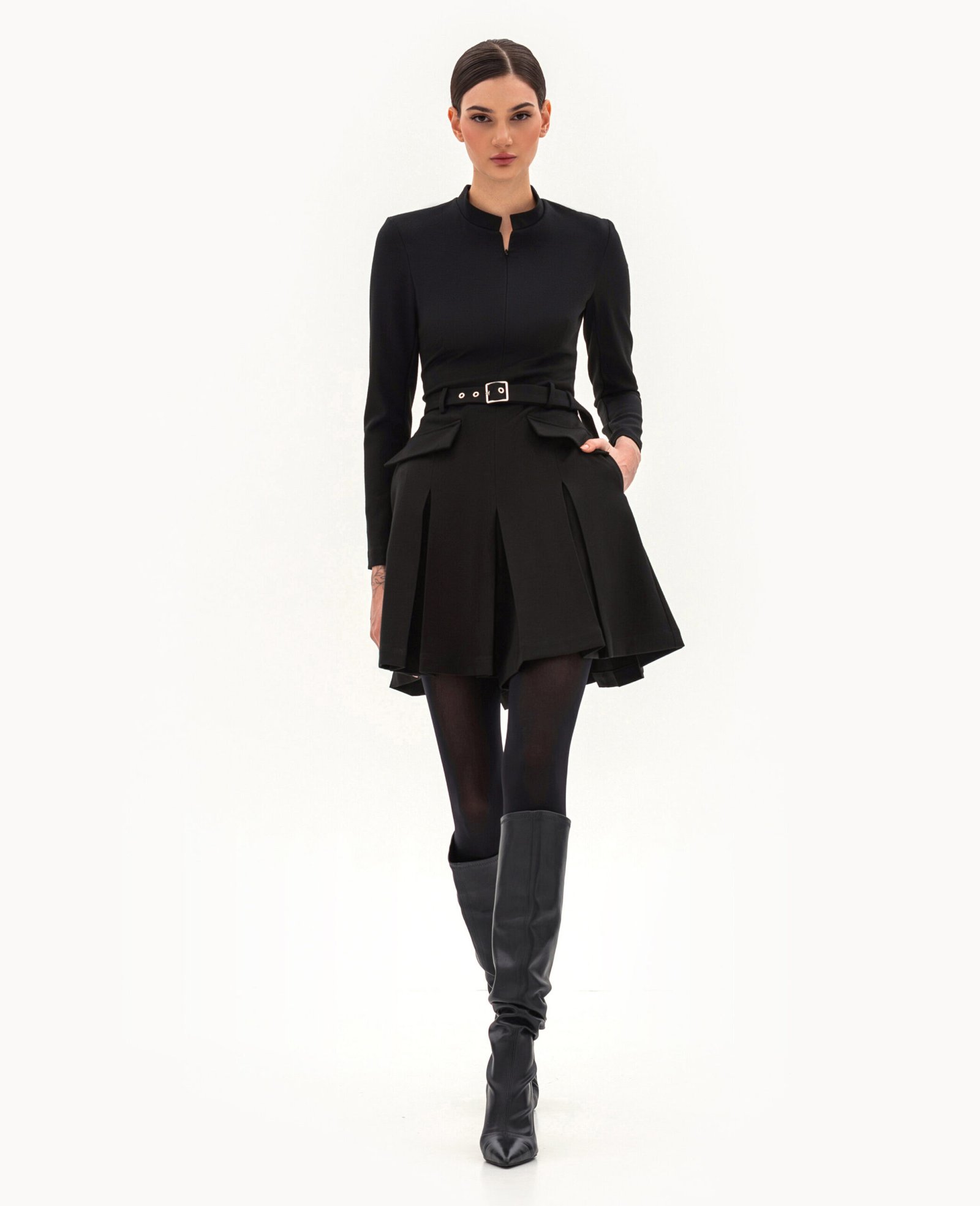 Вид виробу: сукня з шортами, відрізна по лінії талії, з блискавкою по поличці та спинці, зі знімним поясом на металевій пряжці.